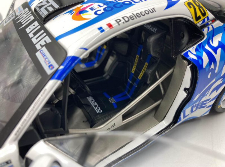 Cette miniature à l’échelle 1/18 (référence S1801624) reproduit fidèlement la livrée engagée au Rallye du Var 2021 : numéro #28, décoration officielle, sponsors, jantes rallye et détails racing (attaches capot, intérieur compétition, assise baquet). Une pièce de choix pour les collectionneurs passionnés de rallye moderne et d’Alpine en compétition.