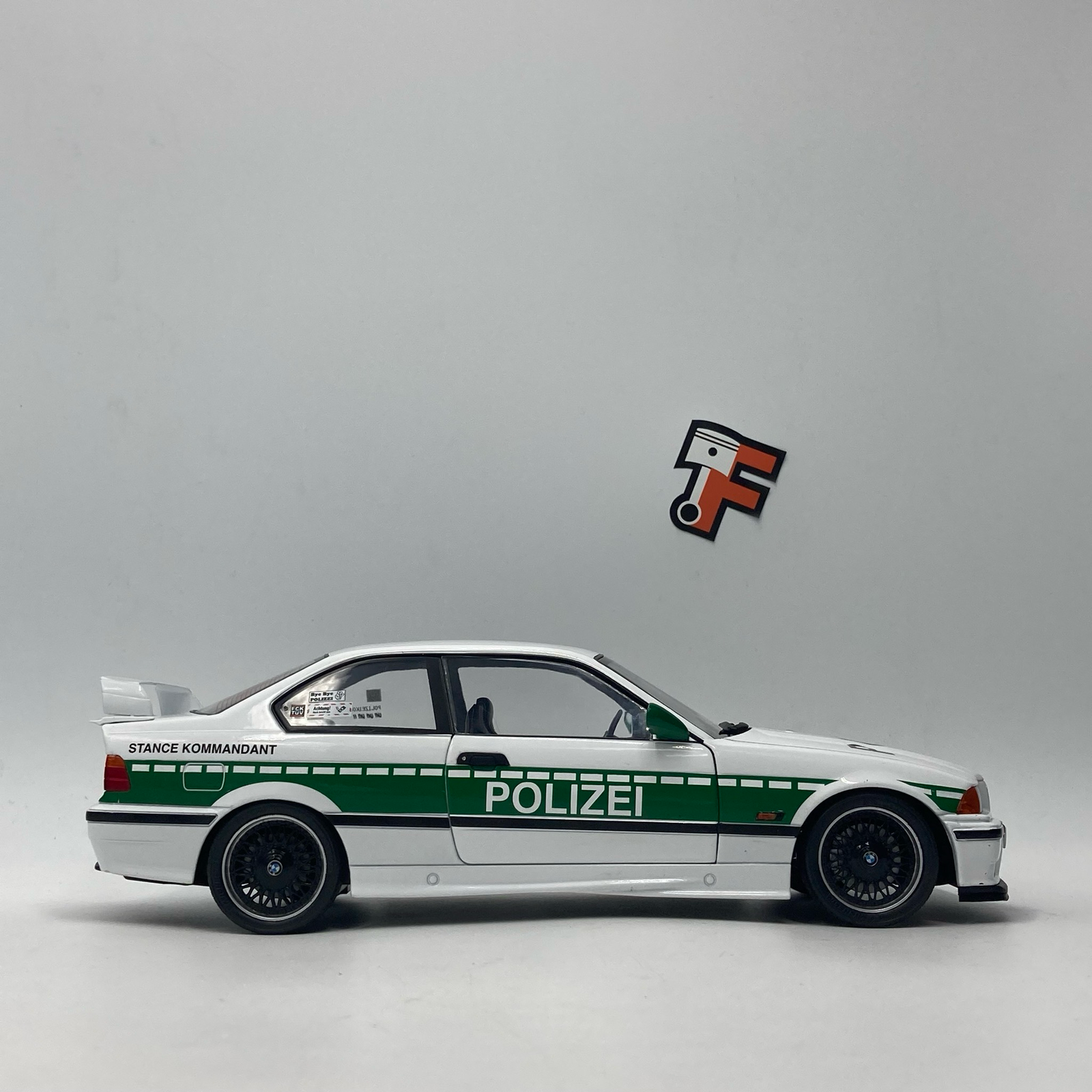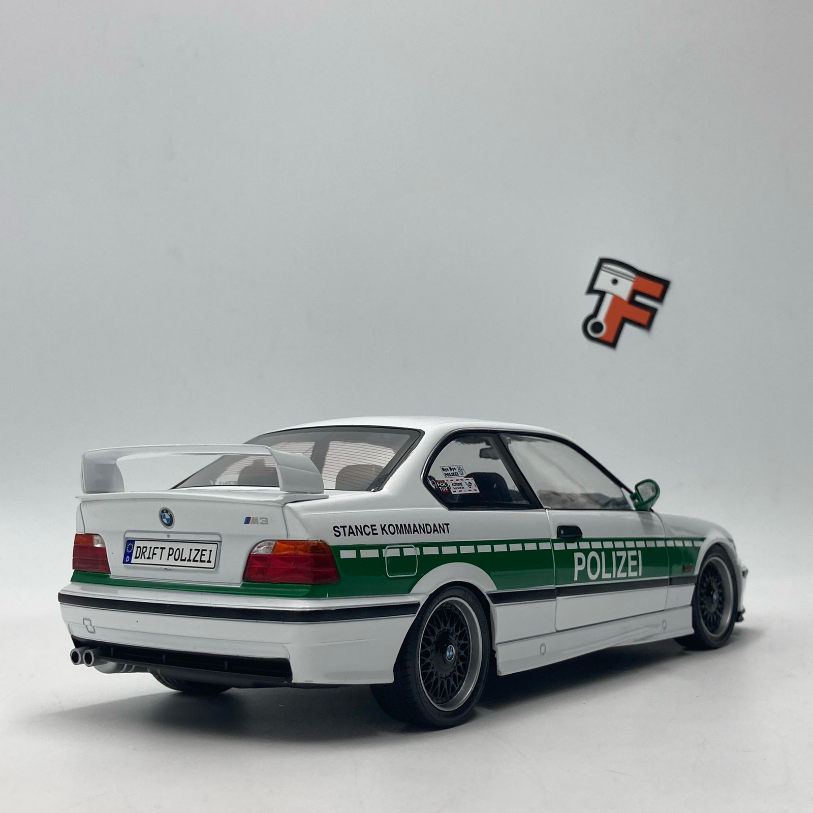 La BMW M3 E36 3.0 Coupé 1991 est déjà une icône des sportives allemandes des années 90. Mais dans cette version Drift Polizei, elle prend une toute autre dimension. Inspirée des véhicules de démonstration et des shows automobiles, cette livrée “Polizei” revisitée en version drift combine look radical, esprit compétition et style unique.