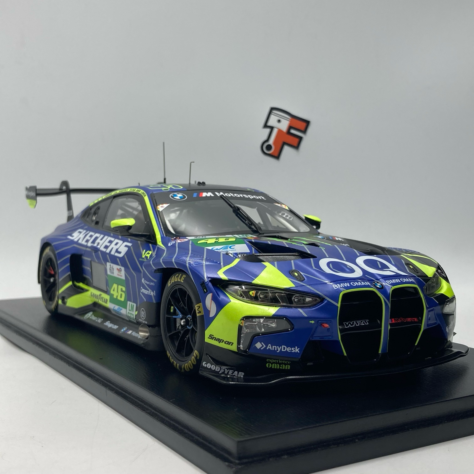 Chaque détail de la BMW M4 LMGT3 Team WRT #46 est soigneusement reproduit, faisant de cette miniature une pièce idéale pour enrichir une collection dédiée aux voitures engagées aux 24 Heures du Mans ou aux modèles BMW Motorsport récents.