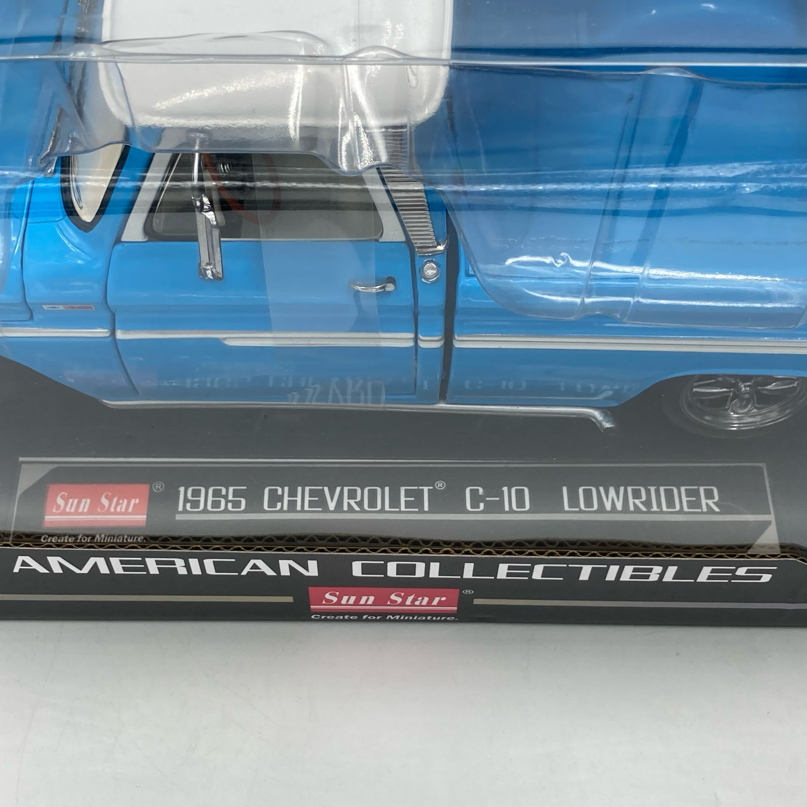 La miniature Chevrolet C-10 Styleside Pickup Lowrider 1965 Blue NO.1366 reproduit fidèlement les détails de ce modèle légendaire. À l’échelle 1/18, elle capture parfaitement le style rétro et l’esthétique unique du Lowrider, avec ses chromes, sa peinture brillante et ses lignes caractéristiques.