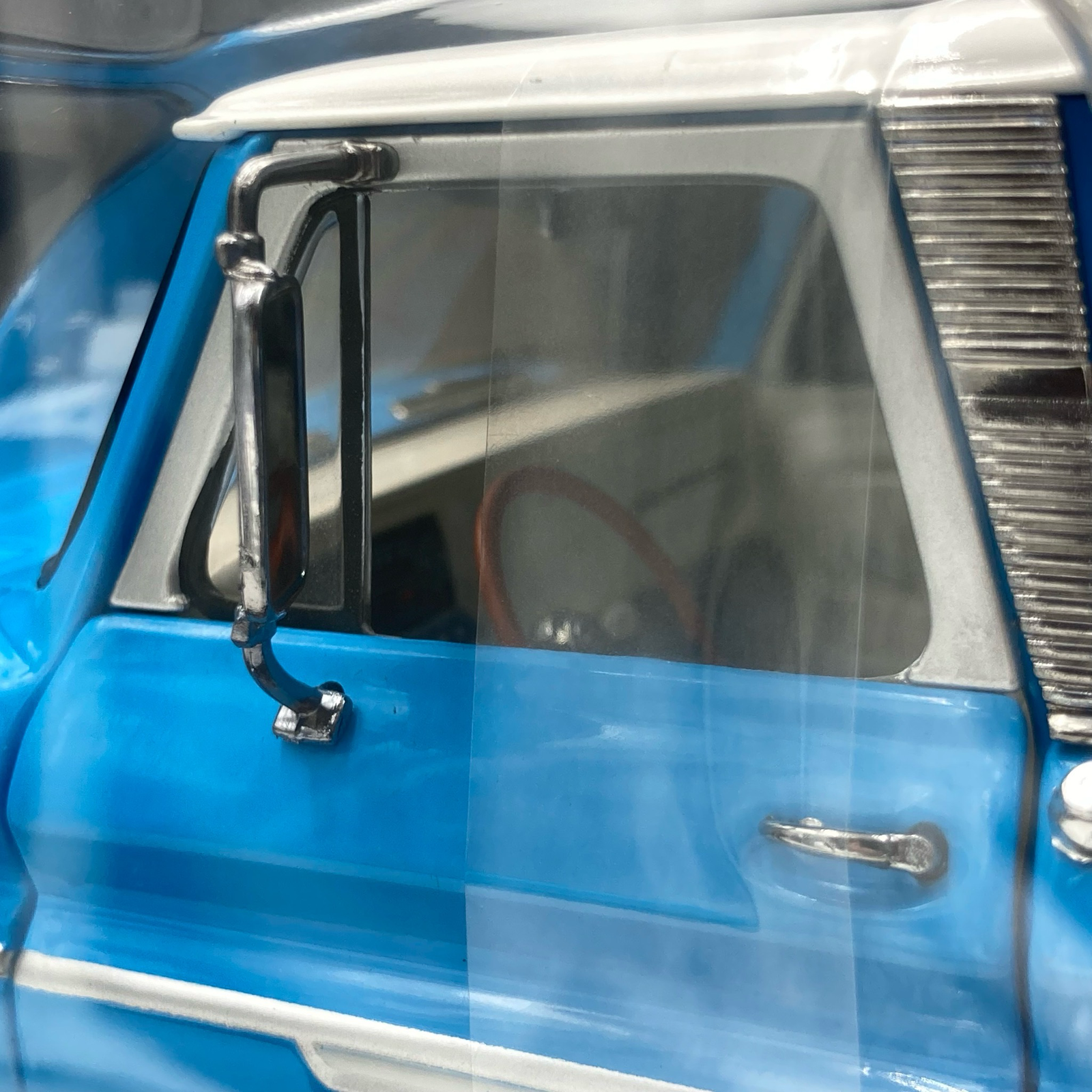 Ce modèle se distingue par sa carrosserie Styleside, ses proportions équilibrées et son look typiquement américain des années 60. La version Lowrider Blue NO.1366 ajoute un charme supplémentaire grâce à sa peinture brillante, ses détails chromés et son style customisé, fidèle aux célèbres pickups de culture Lowrider.