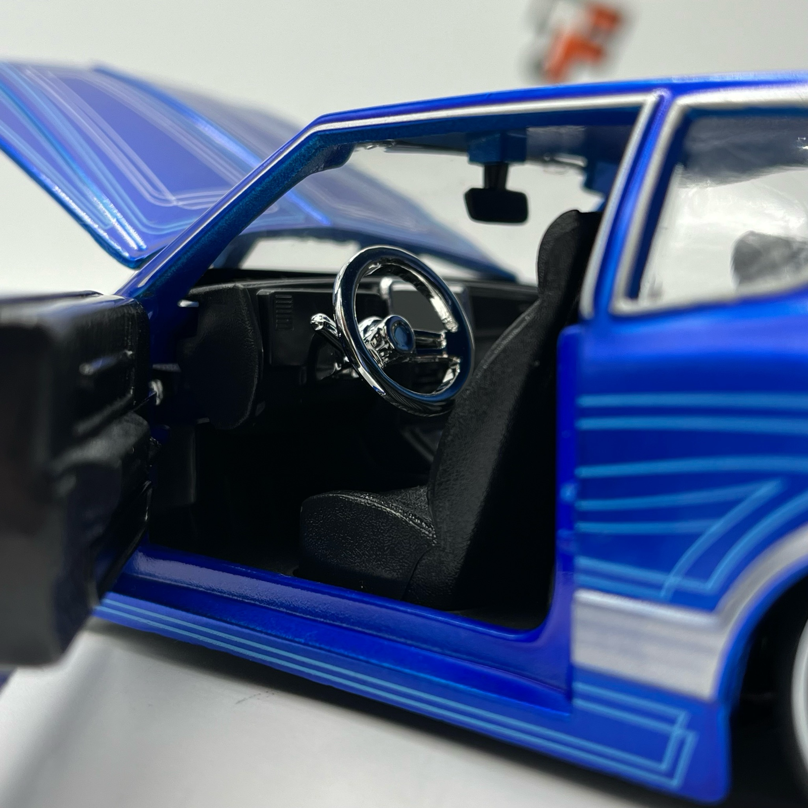 Cette reproduction miniature capture parfaitement l’esprit de ce modèle mythique, avec une carrosserie aux lignes caractéristiques, des détails précis de la calandre, des jantes sportives et un intérieur soigneusement reproduit. Chaque élément a été conçu pour offrir un niveau de réalisme élevé, idéal pour les collectionneurs et les passionnés de voitures américaines classiques.