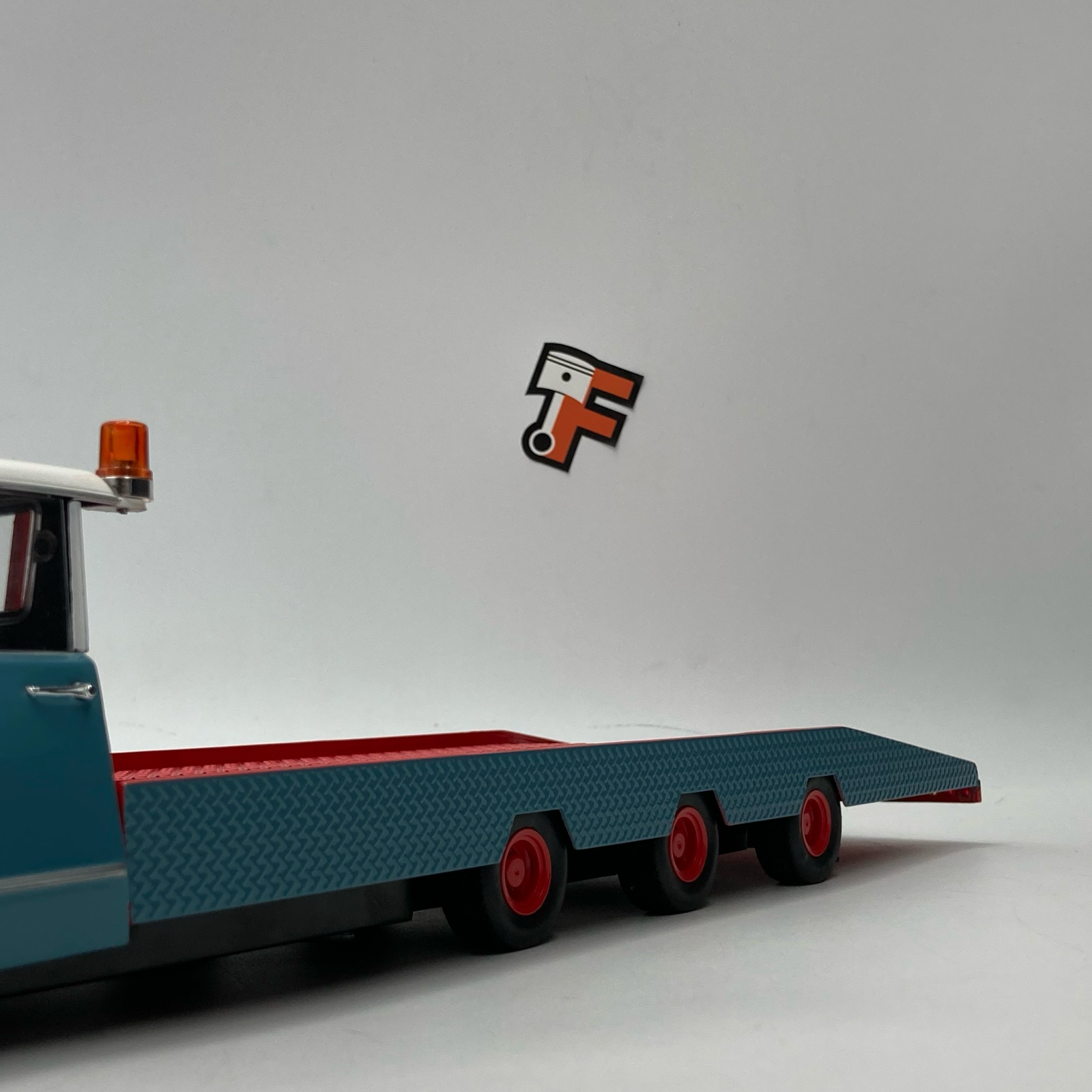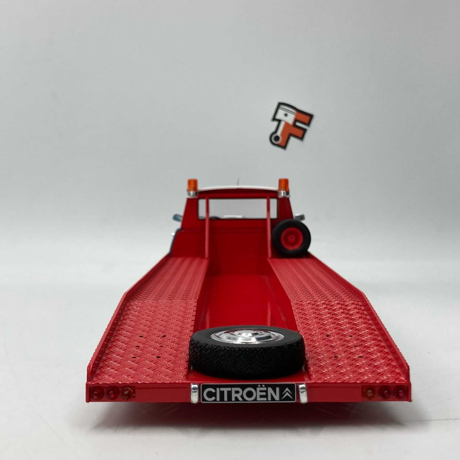 Cette miniature reproduit fidèlement la version 1970 en couleur bleue, avec un niveau de détail élevé : carrosserie allongée caractéristique, multiples essieux arrière, éléments de carrosserie précis et finitions réalistes. Elle constitue une pièce rare et originale pour les collectionneurs de véhicules Citroën et de miniatures atypiques.
