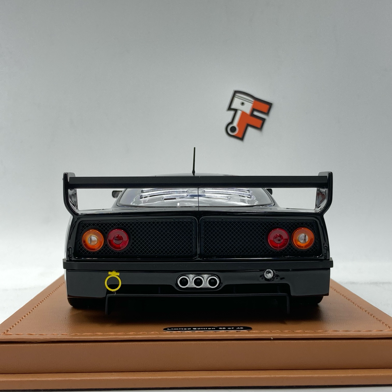 Cette Press Version Gloss Black de 1996 se distingue par sa finition noire brillante spectaculaire, qui met parfaitement en valeur les lignes agressives et les appendices aérodynamiques de la voiture. Rare et exclusive, cette édition miniature reproduit l’une des variantes les plus fascinantes de la F40 LM.