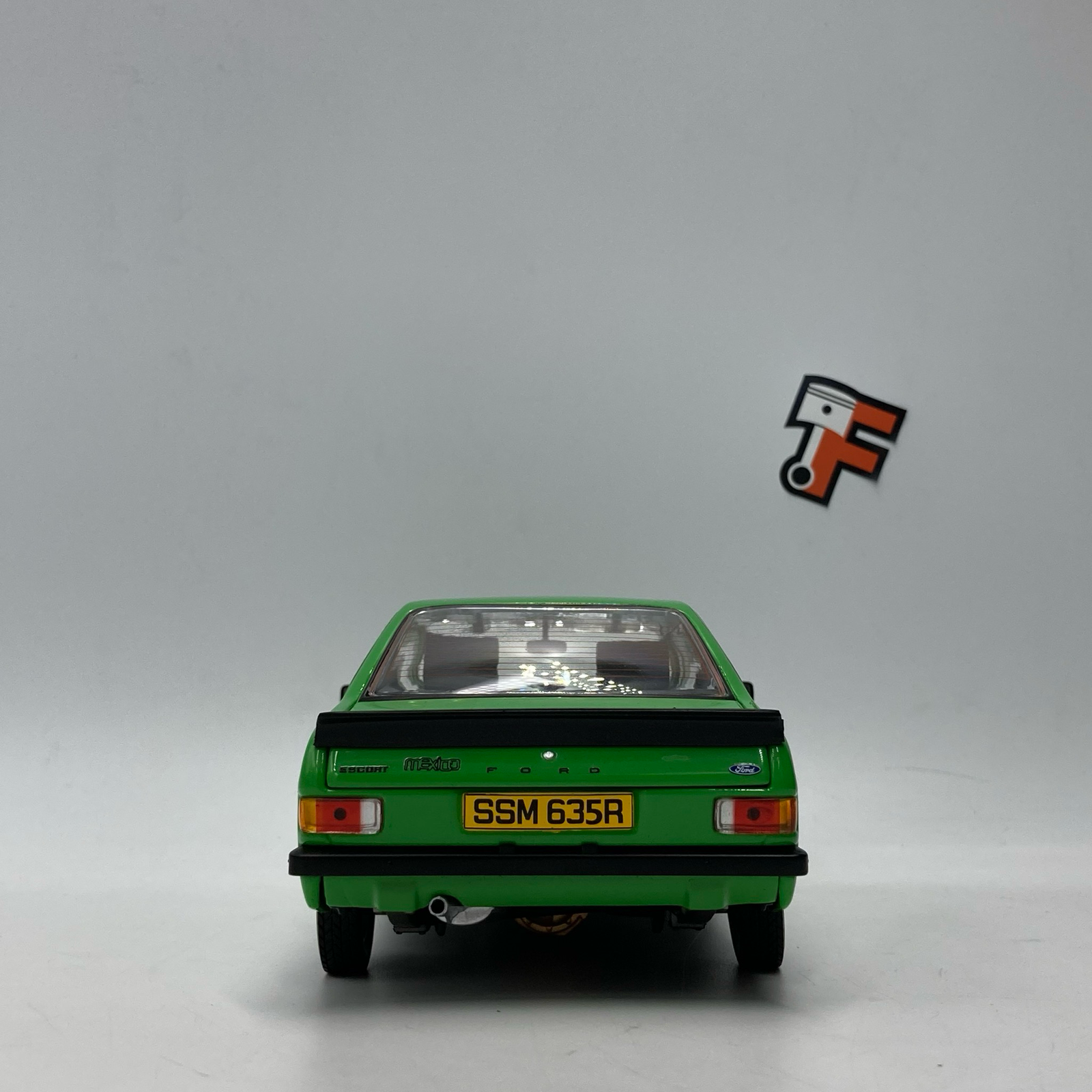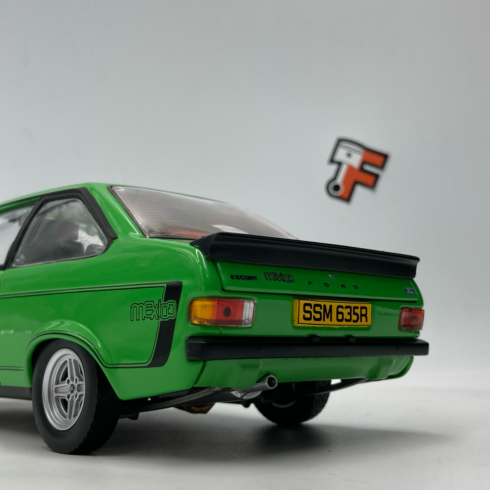 Cette miniature Ford Escort MK2 RS Mexico Green 1976 – 1/18 – 4635R reproduit fidèlement tous les détails du modèle original :