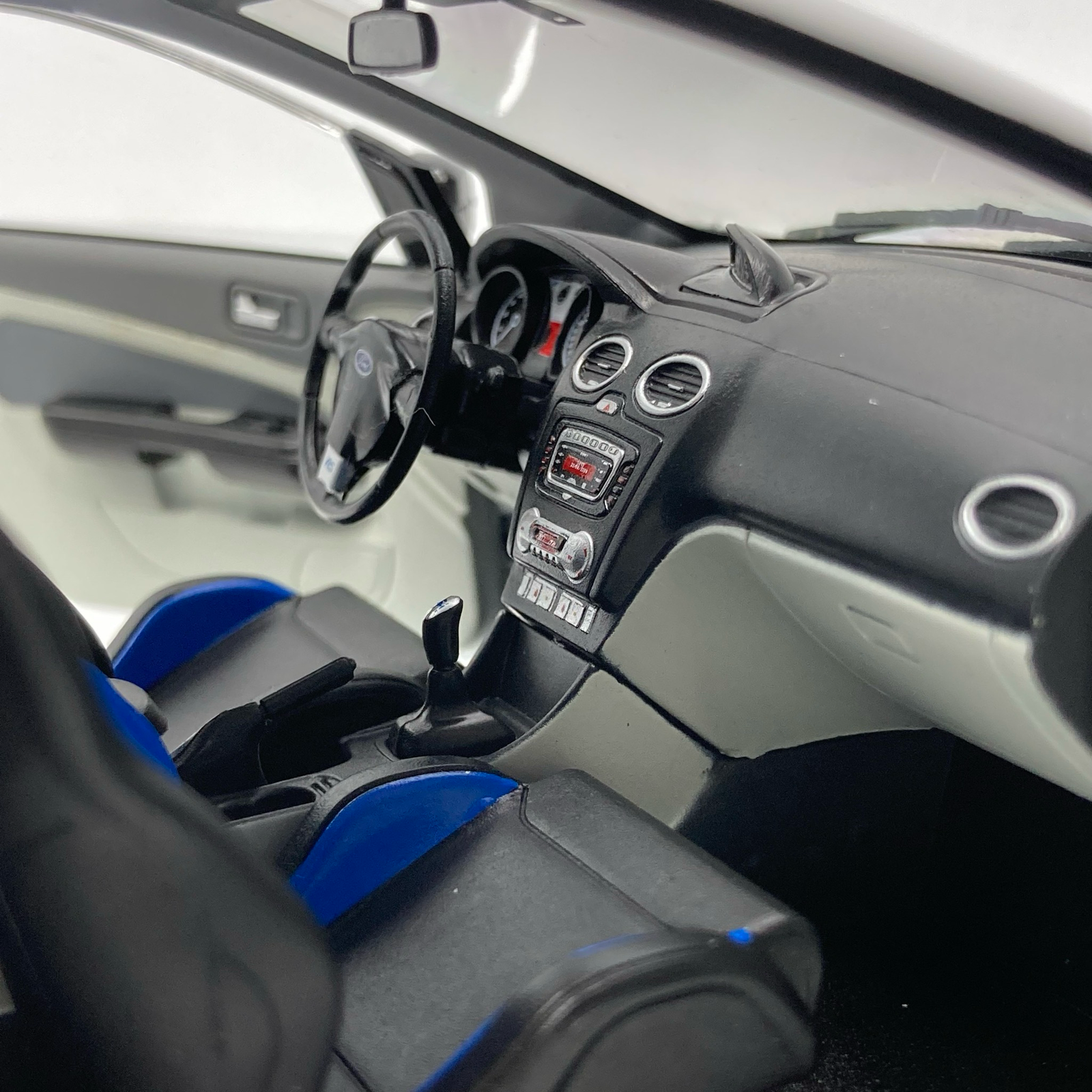 Cette miniature 1/18 reproduit fidèlement la Focus RS MK2 Frozen White 2009, avec tous les détails caractéristiques : jantes, calandre, lignes de carrosserie et couleurs authentiques. Elle constitue une pièce incontournable pour les collectionneurs de sportives européennes modernes.