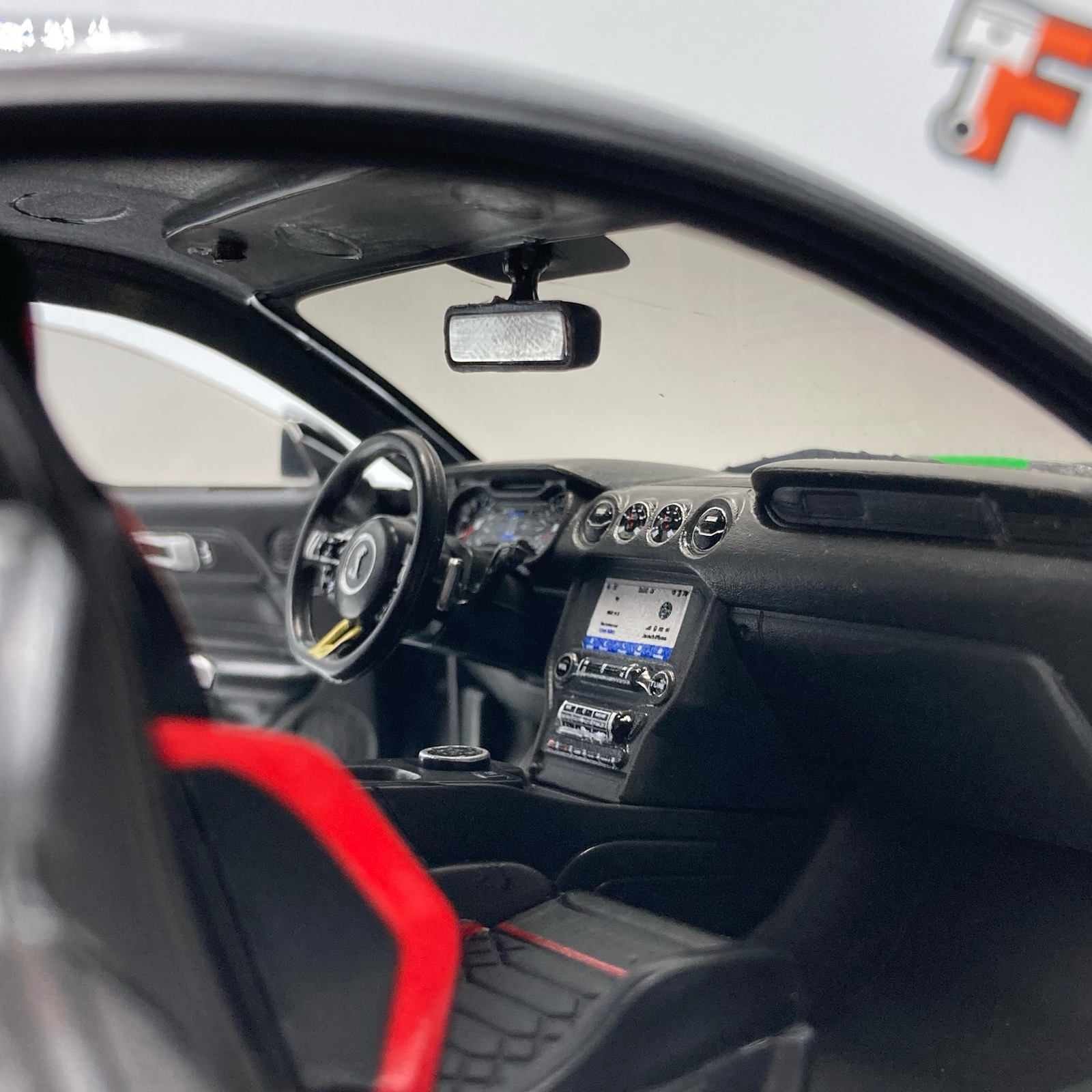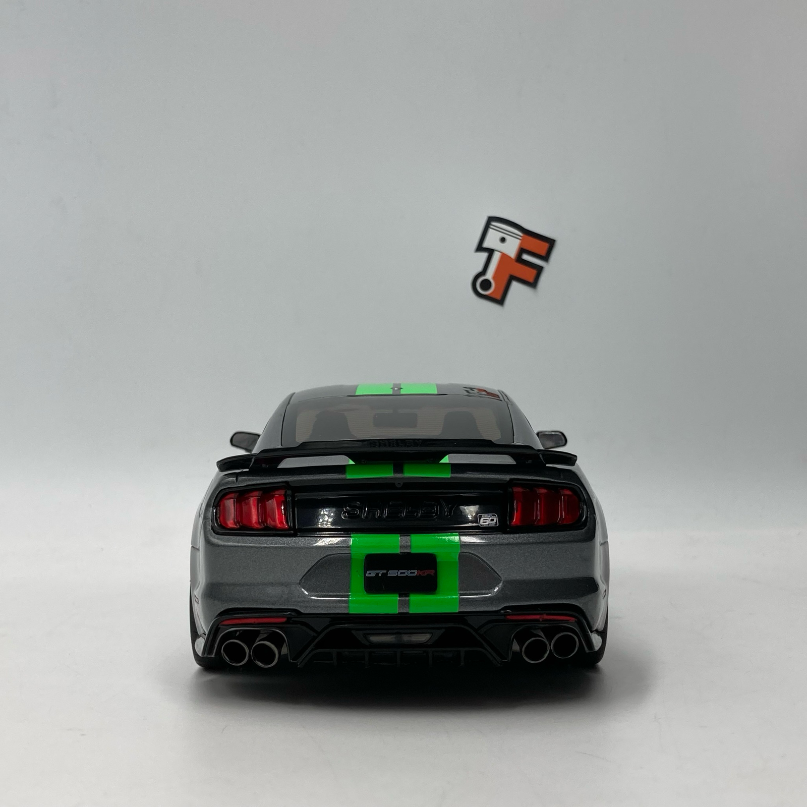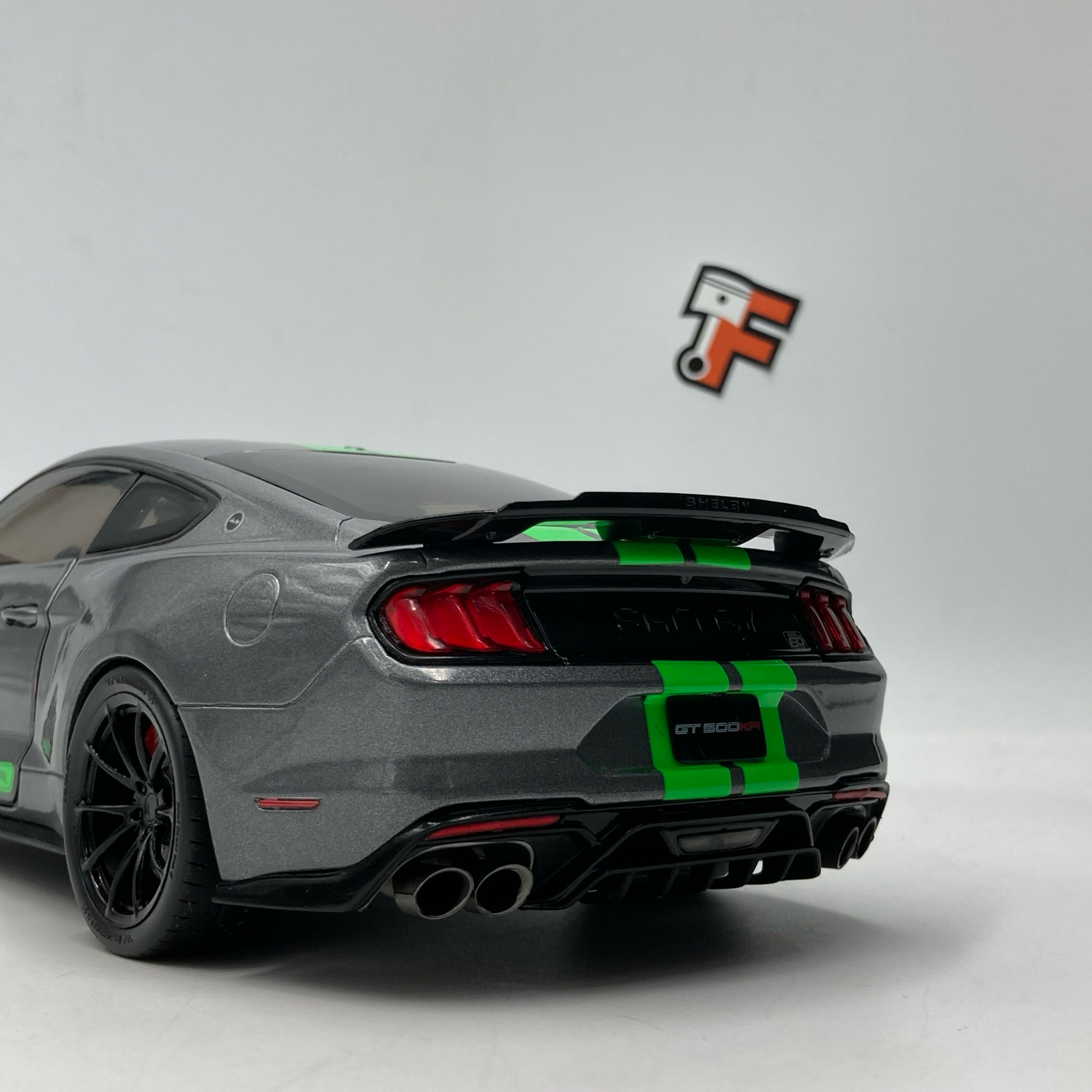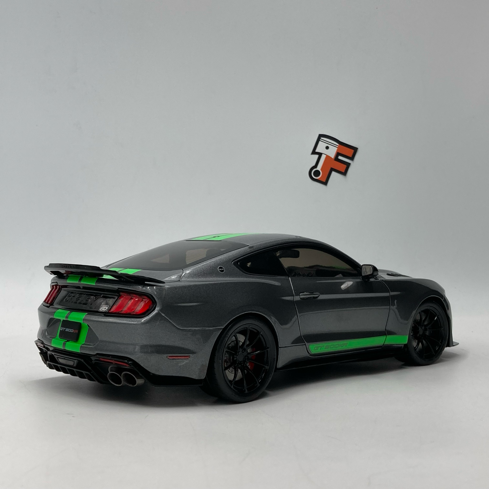 Sous le capot de la version réelle se cache un V8 suralimenté de 5,2 litres, développant plus de 760 chevaux. Cette miniature rend hommage à cette puissance avec une précision remarquable. Les portières ouvrantes permettent d’admirer un habitacle détaillé, fidèle aux standards de Shelby. La finition de la peinture grise, contrastée par les célèbres bandes sportives vertes, en fait une pièce maîtresse pour tout collectionneur de véhicules américains.