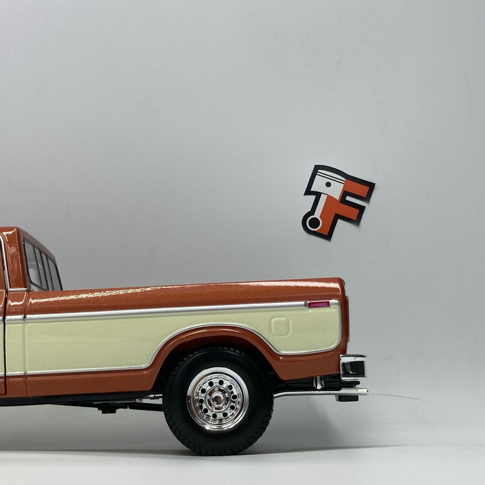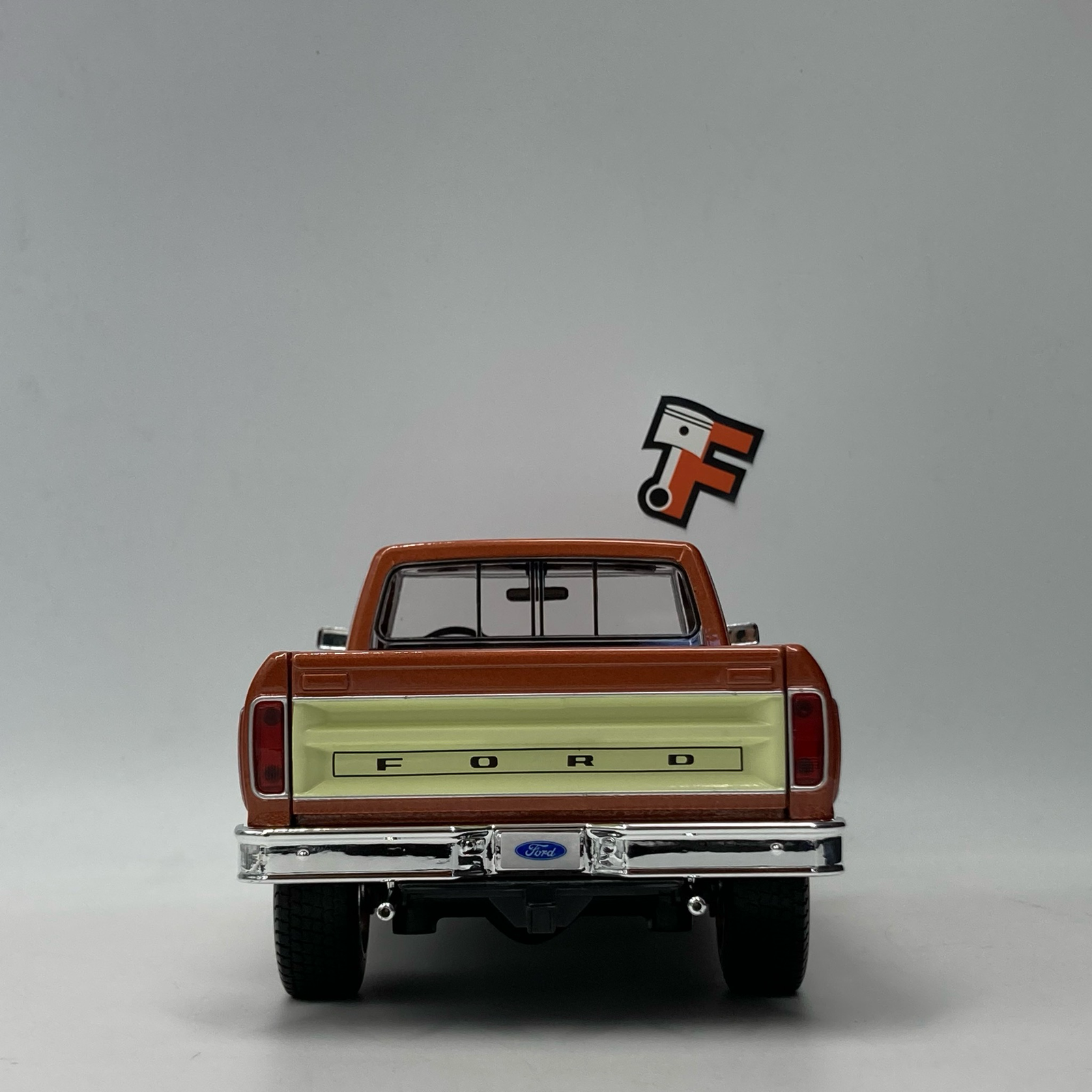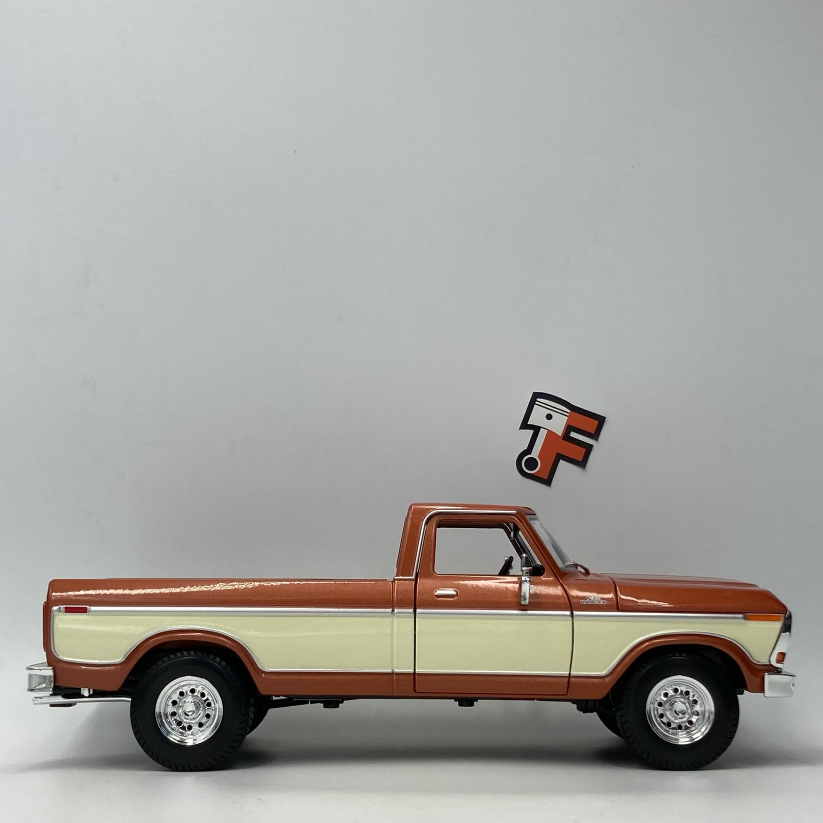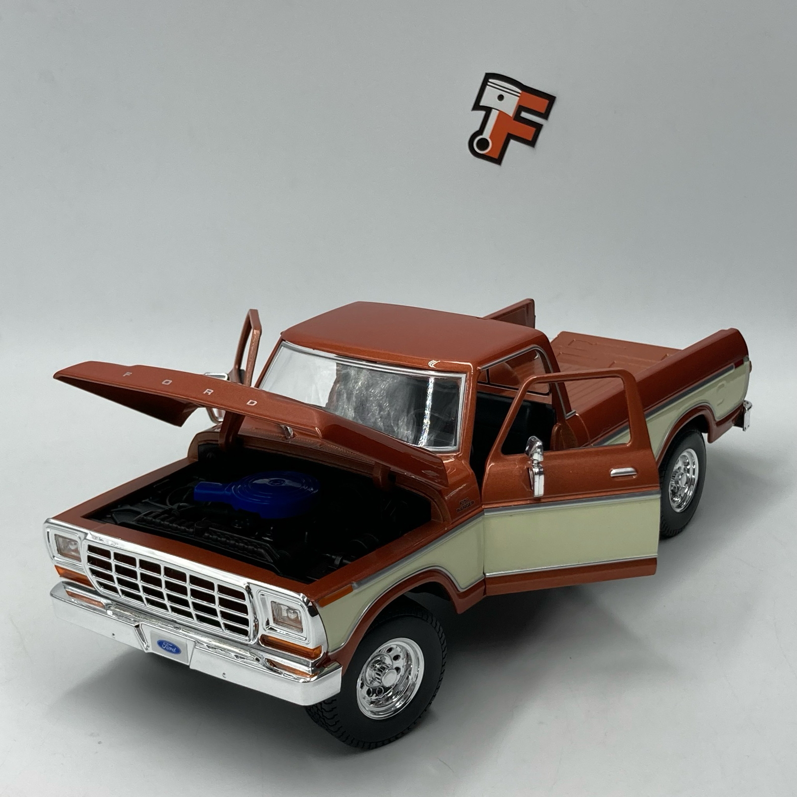 Le modèle de 1979 est particulièrement apprécié pour son design typique de l’époque : calandre imposante, lignes carrées, large capot et allure robuste qui symbolisent parfaitement l’esprit des pick-up américains classiques. La combinaison de couleurs Copper / Cream renforce encore son caractère vintage et lui donne une présence remarquable.