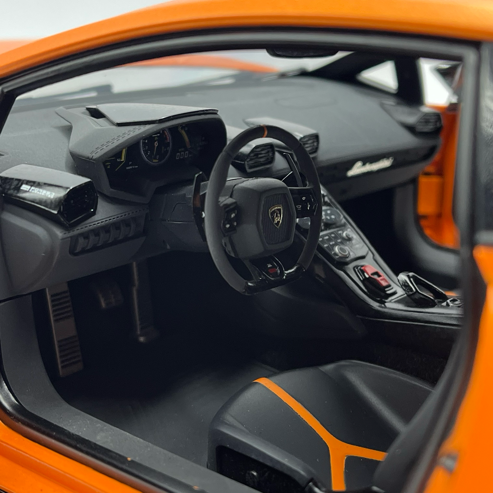 L’intérieur de cette Huracan Performante est un chef-d’œuvre de miniaturisation. On y retrouve l’ambiance « cockpit » typique de Lamborghini, avec des finitions rappelant l’Alcantara et les surpiqûres contrastées. Le moteur V10, visible sous le capot transparent, est une ode à la mécanique atmosphérique. C’est une pièce de collection qui s’adresse aux amateurs de supercars italiennes cherchant à posséder un morceau d’histoire automobile mondiale dans leur vitrine.
