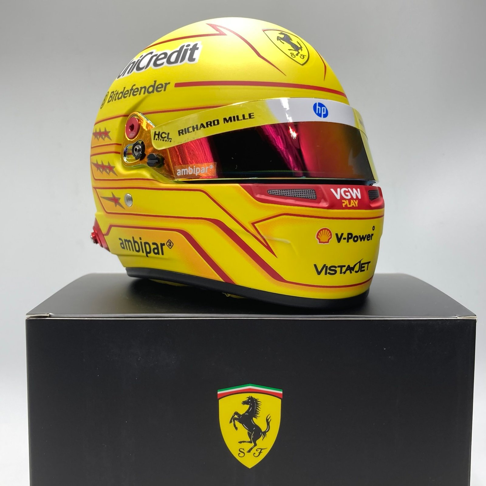Ce mini casque restitue parfaitement l’identité visuelle du pilote pour cette saison exceptionnelle.