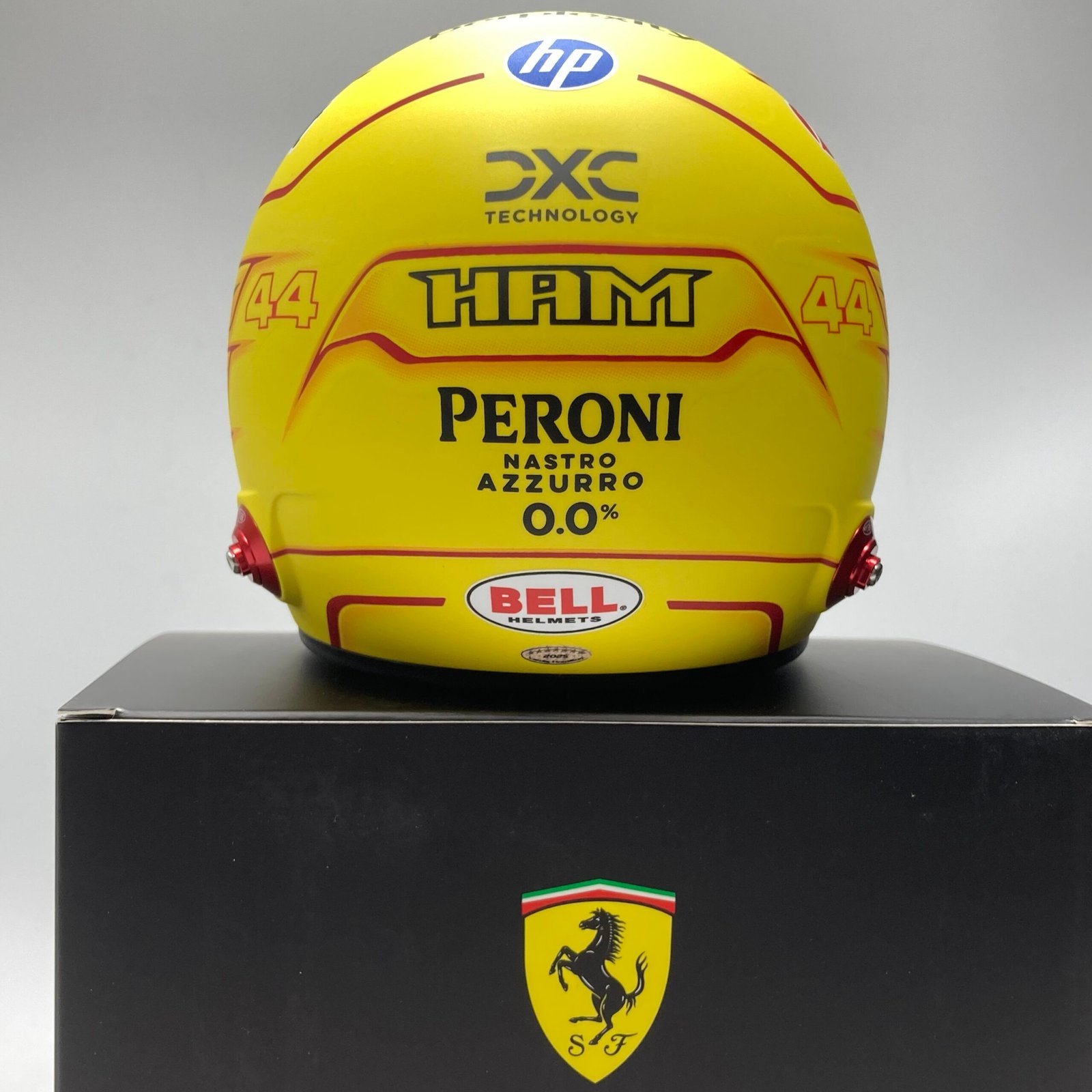 Le mini casque Lewis Hamilton Ferrari F1 2025 est une reproduction fidèle du casque porté par le septuple champion du monde lors de sa première saison historique chez Ferrari. Ce casque symbolise une nouvelle ère dans la carrière de Lewis Hamilton, marquant un tournant majeur dans l’histoire de la Formule 1.