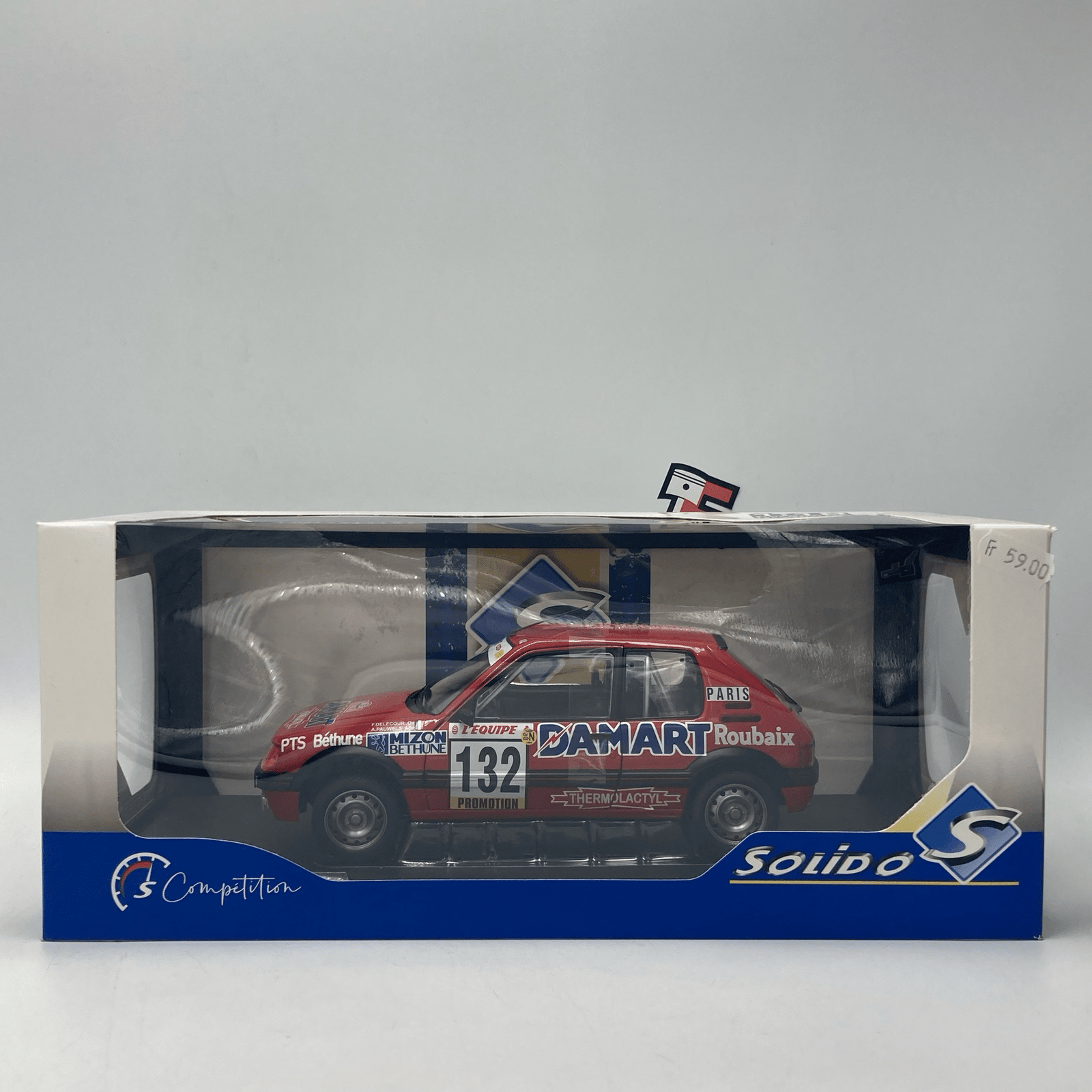 La Peugeot 205 GTi 1.6 Rallye Monte-Carlo 1986 #132 incarne toute la passion du rallye des années 80. Engagée lors du mythique Rallye Monte-Carlo, cette version pilotée par François Delecour représente les débuts prometteurs d’un futur grand nom du rallye.