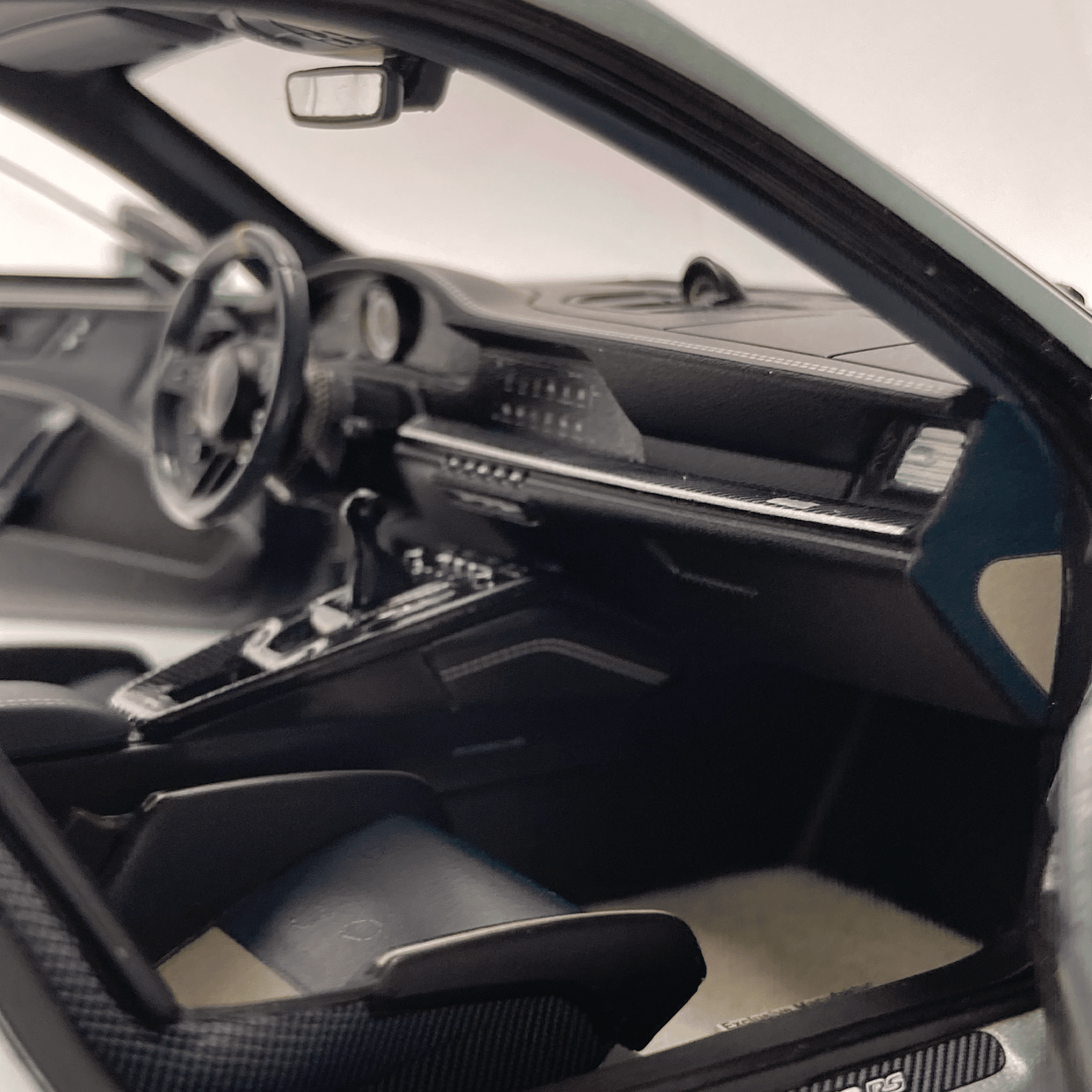 La Porsche 911 GT3 RS 992 Minichamps reproduit fidèlement les lignes extrêmes du modèle réel : aileron imposant, jantes spécifiques, détails aérodynamiques et intérieur travaillé. La qualité de la peinture et l’assemblage précis en font une pièce incontournable pour les collectionneurs.
