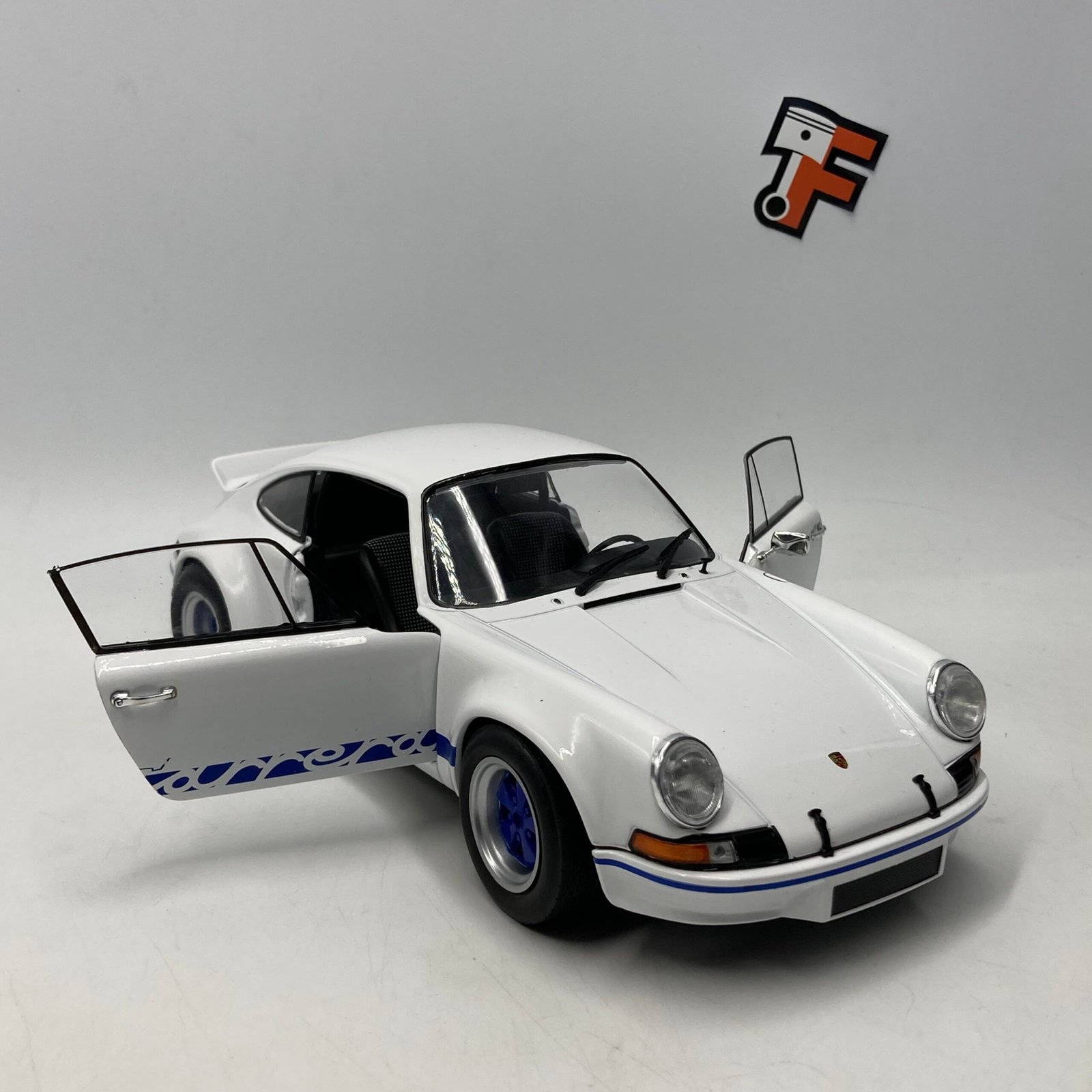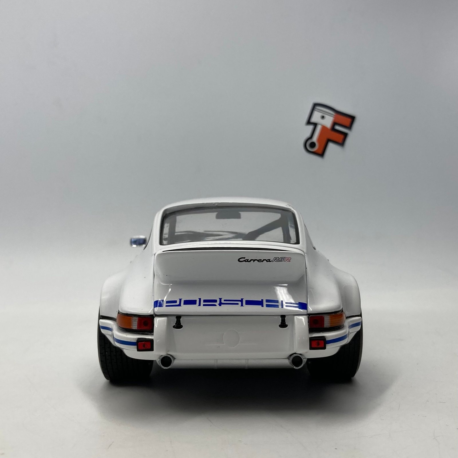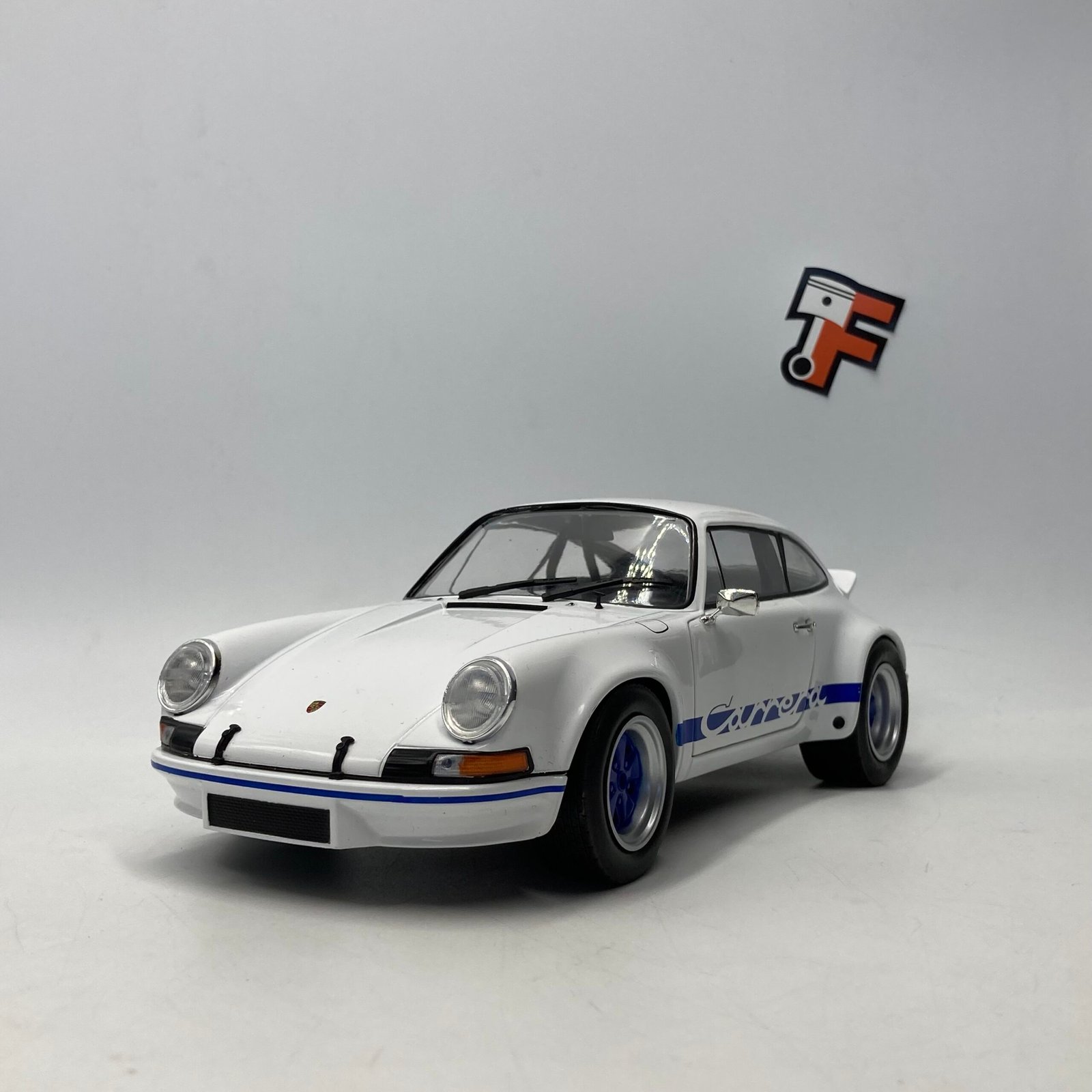Cette miniature Porsche 911 RSR à l’échelle 1/18 reproduit fidèlement la version White/Blue Carrera, avec un soin particulier sur :