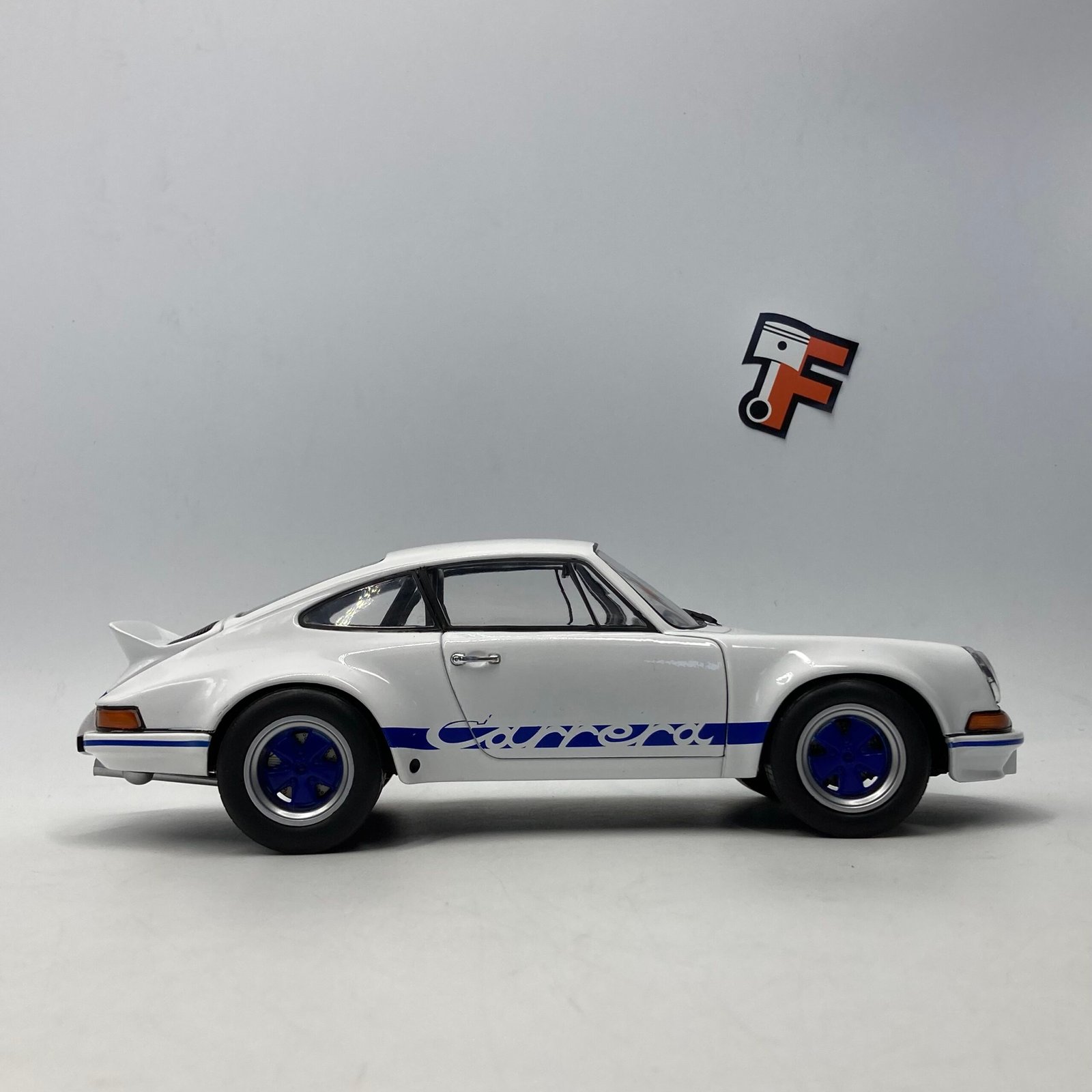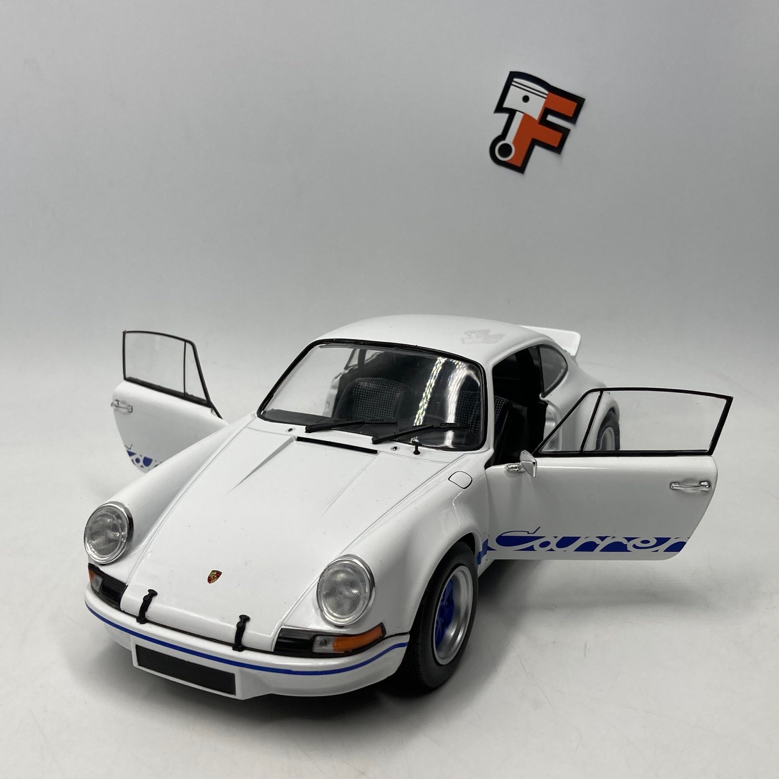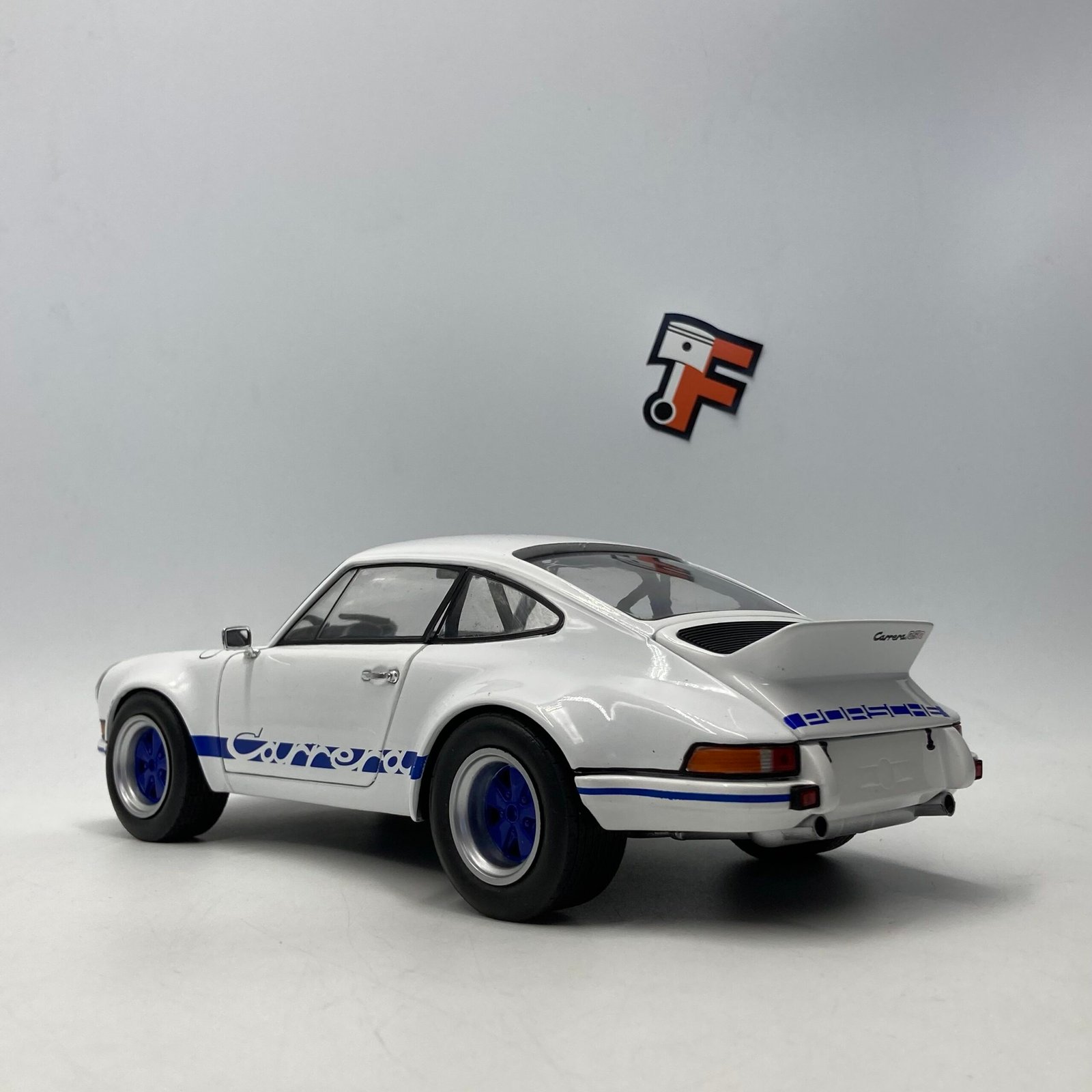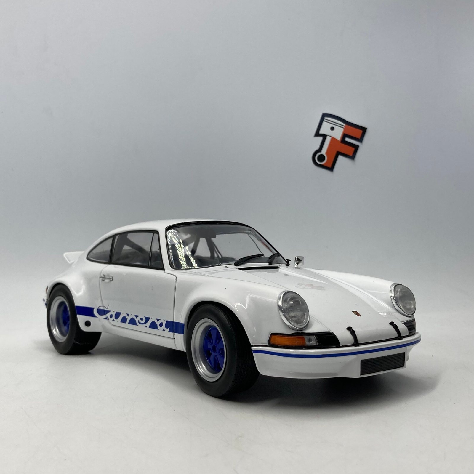 Cette miniature Porsche 911 RSR à l’échelle 1/18 reproduit fidèlement la version White/Blue Carrera, avec un soin particulier sur :