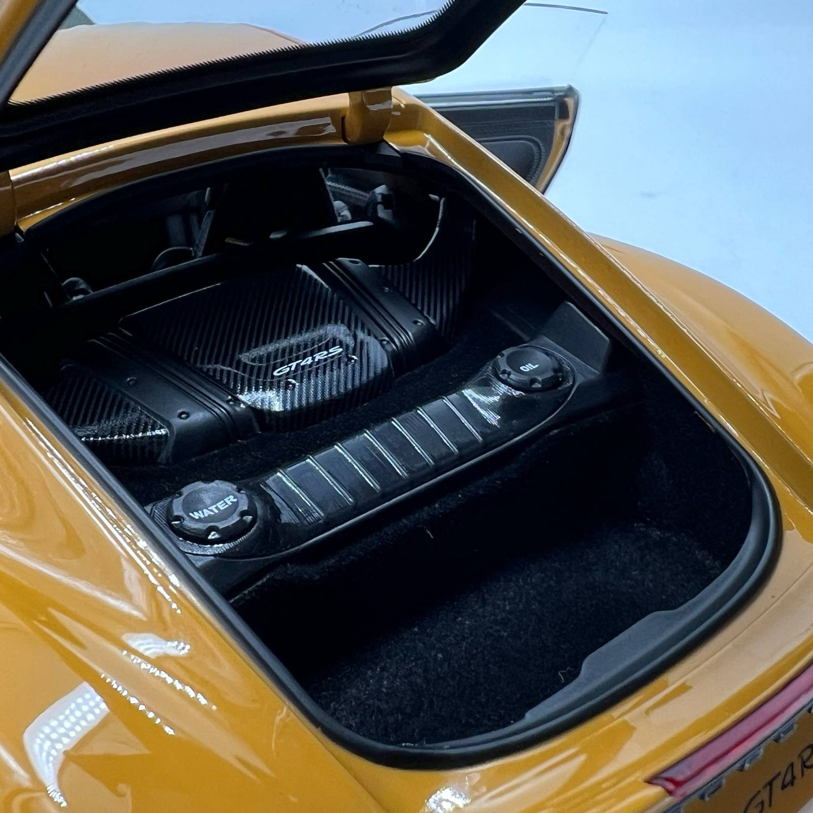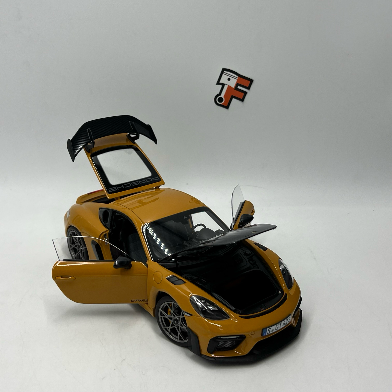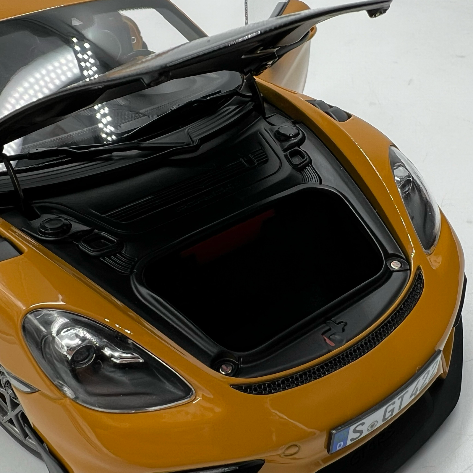 Cette miniature met en avant la superbe couleur Bahama Gelb, un jaune vif et lumineux qui sublime les lignes agressives de la Cayman GT4. Cette teinte rare accentue le caractère exclusif du modèle et attire immédiatement l’œil dans une collection.