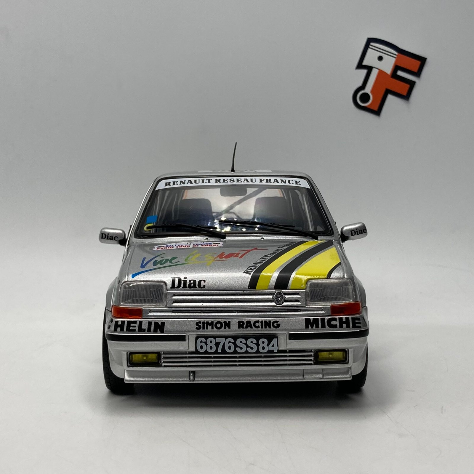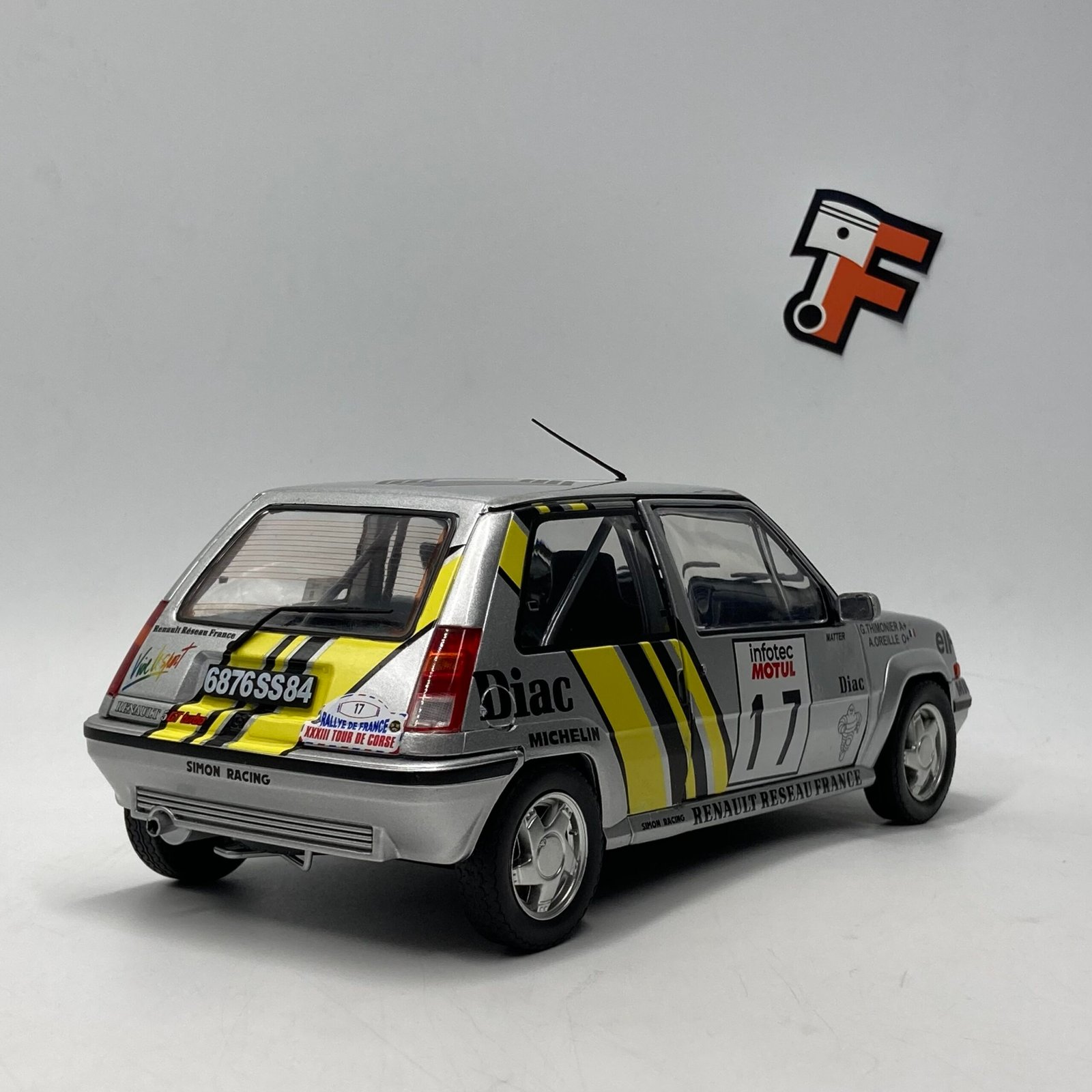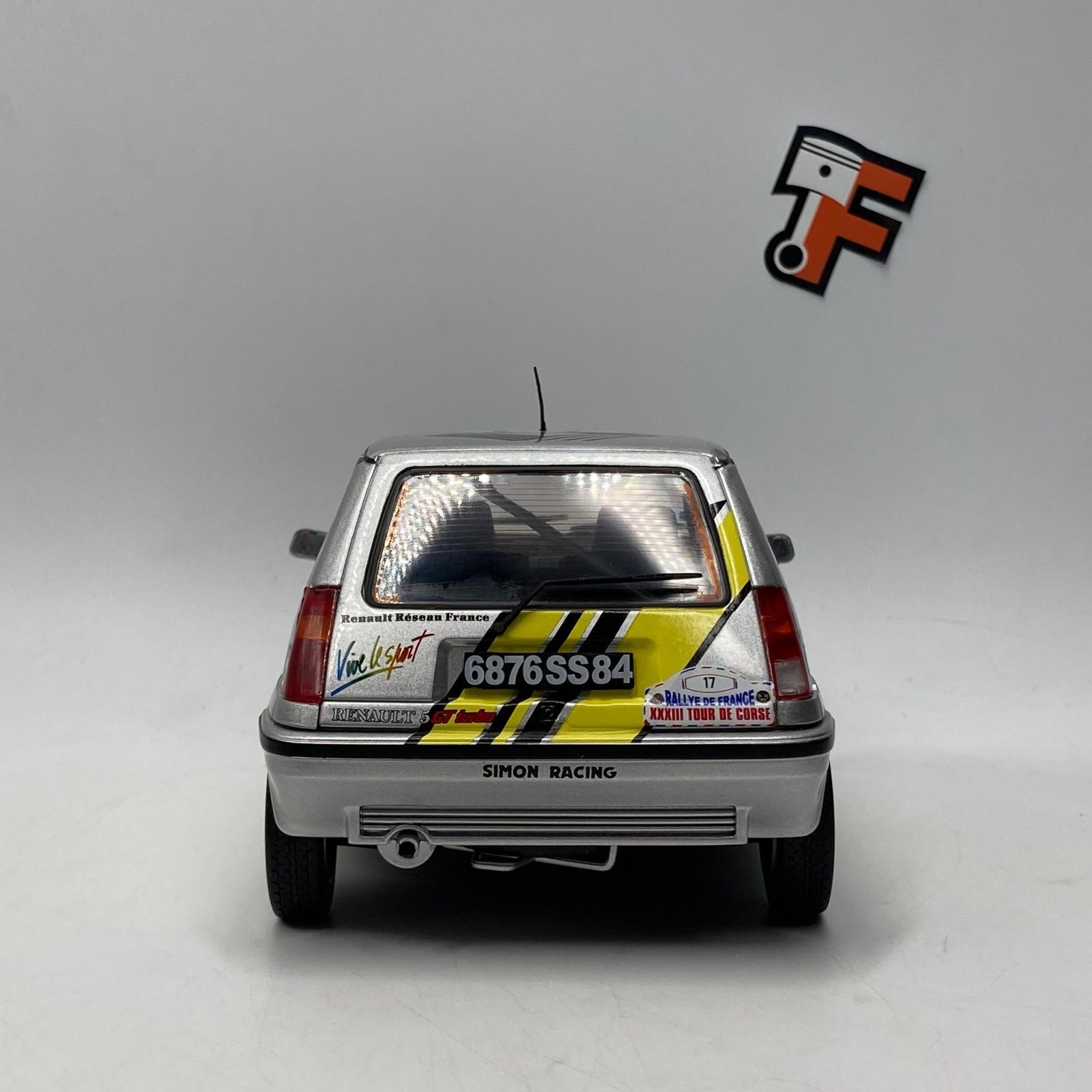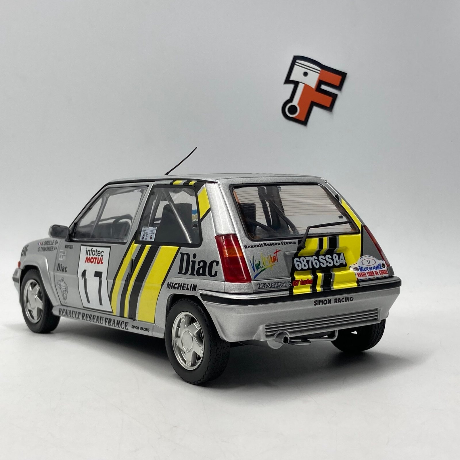 Miniature Renault 5 GT Turbo Group N 1989, aux couleurs Simon Racing Team et Diac, fidèle au Rallye de Corse. Disponible immédiatement chez Frakaxessoires en Suisse.