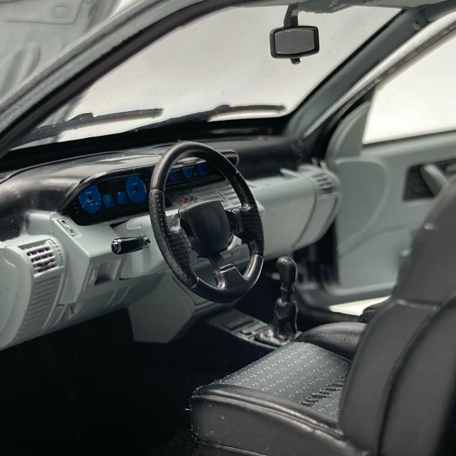 La Clio 16S est aujourd’hui une véritable icône des années 90, très recherchée par les collectionneurs. Sa version miniature à l’échelle 1/18 permet de revivre l’âge d’or des sportives françaises dans les moindres détails.