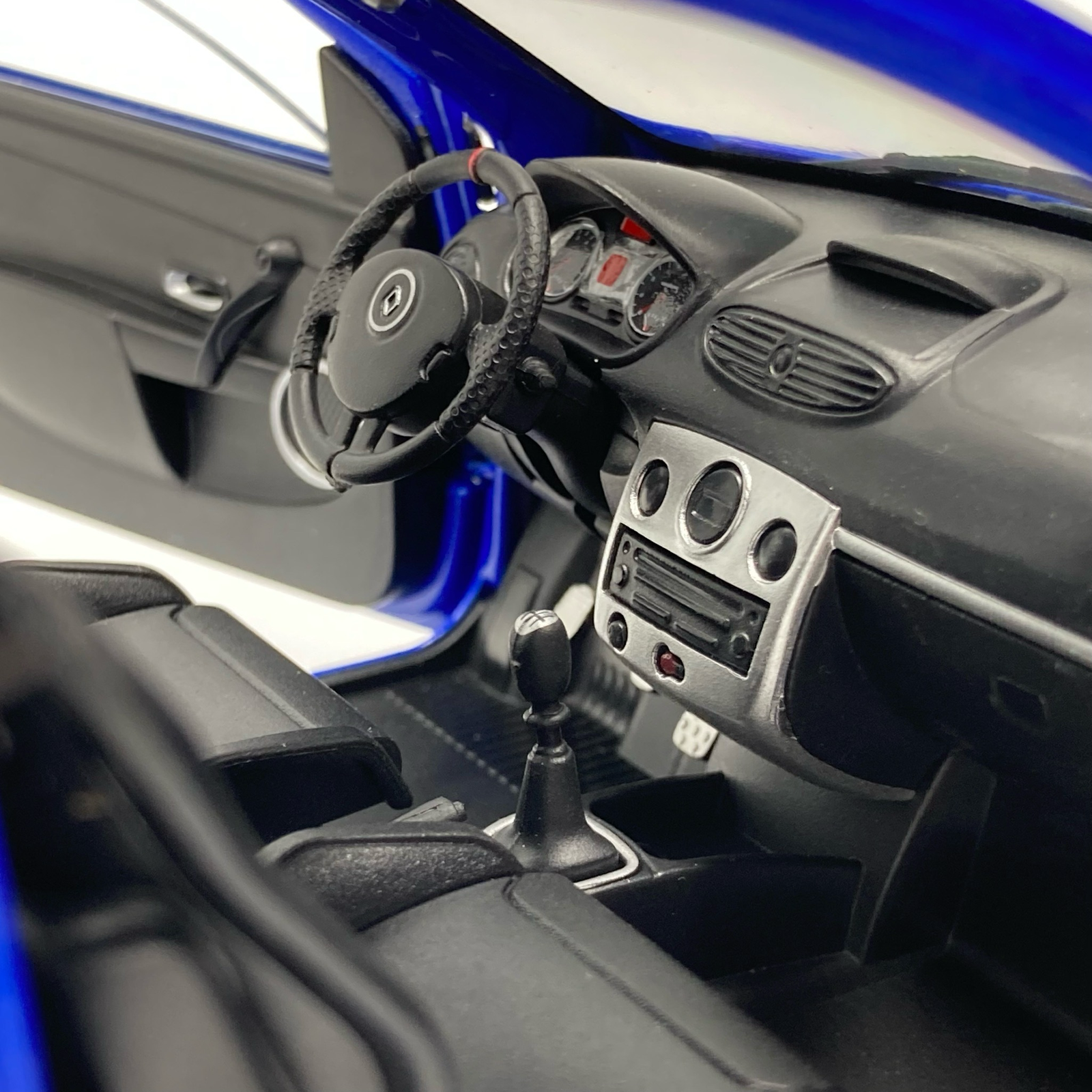 Cette miniature à l’échelle 1/18 reproduit avec précision chaque détail de la Clio RS F1 Team :