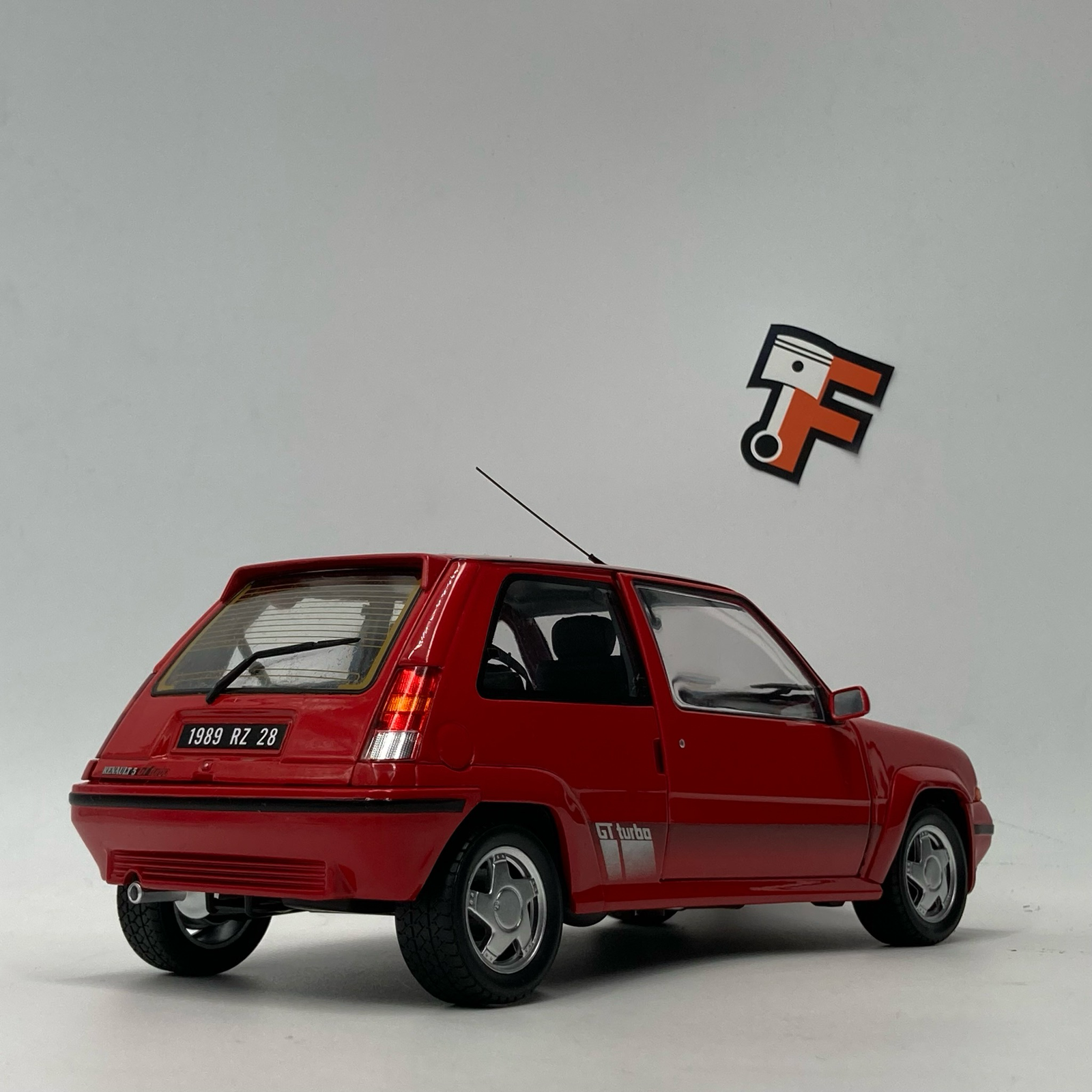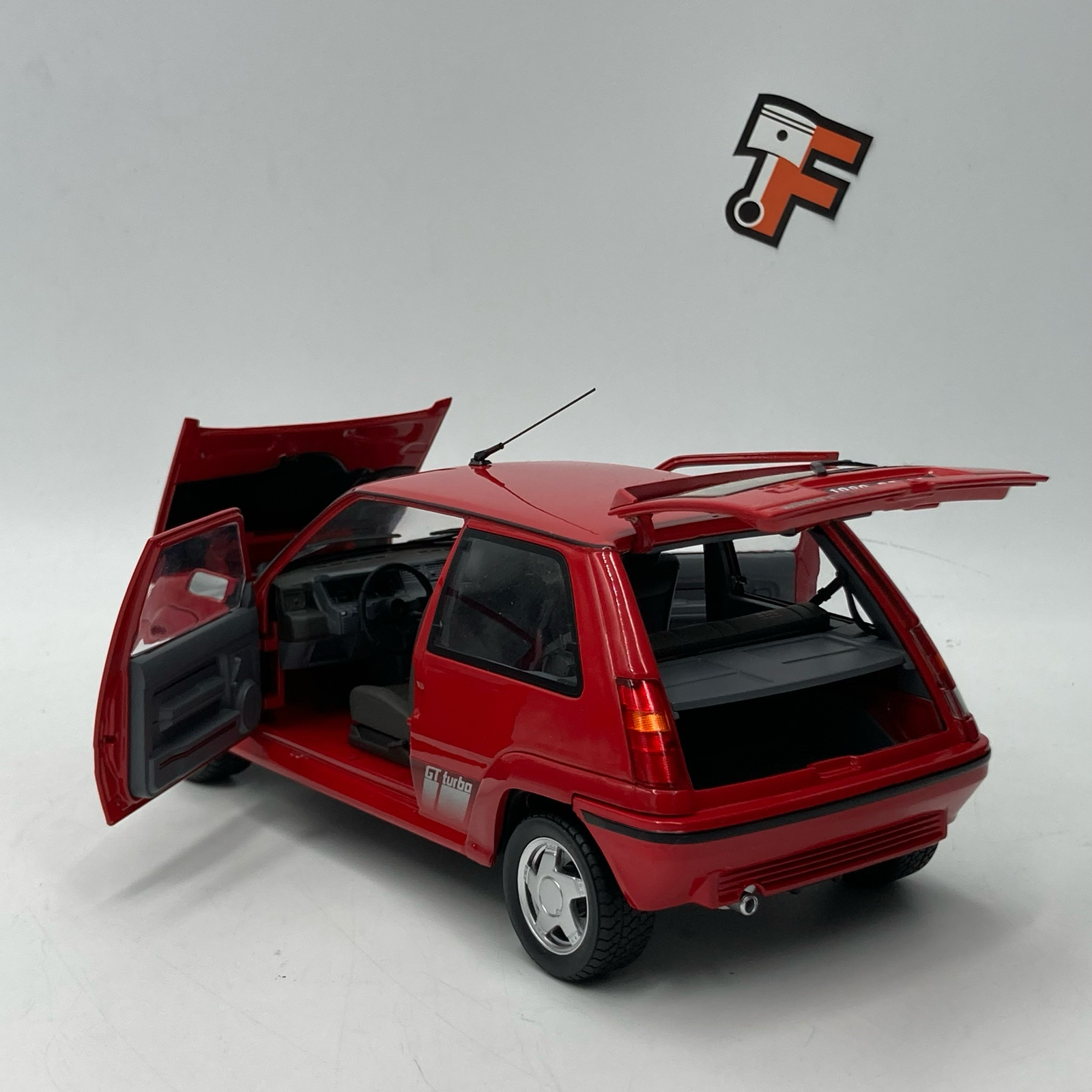 Cette miniature Renault SuperCinq GT Turbo Rouge 1989 au 1/18 – référence 185216, produite par Norev, reproduit fidèlement cette petite sportive emblématique.