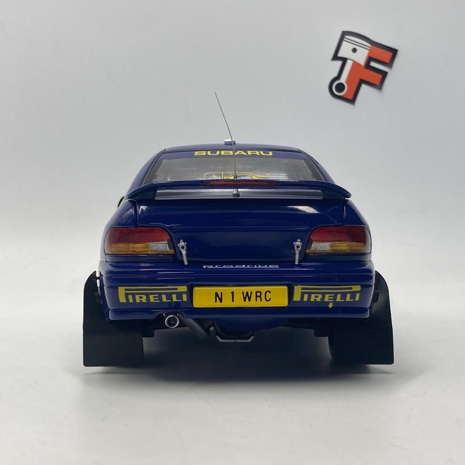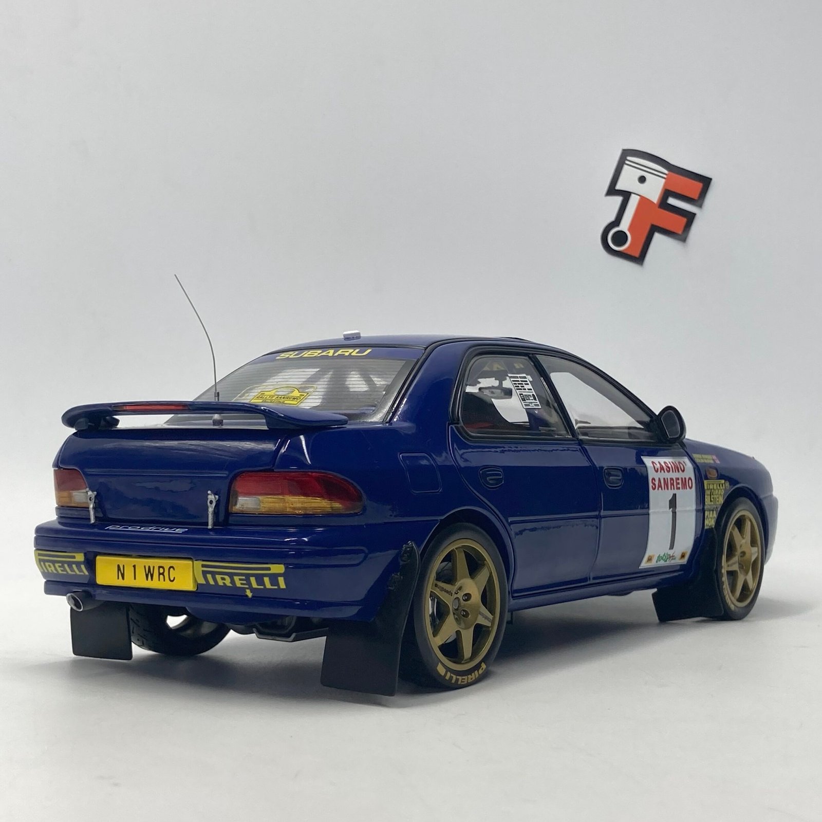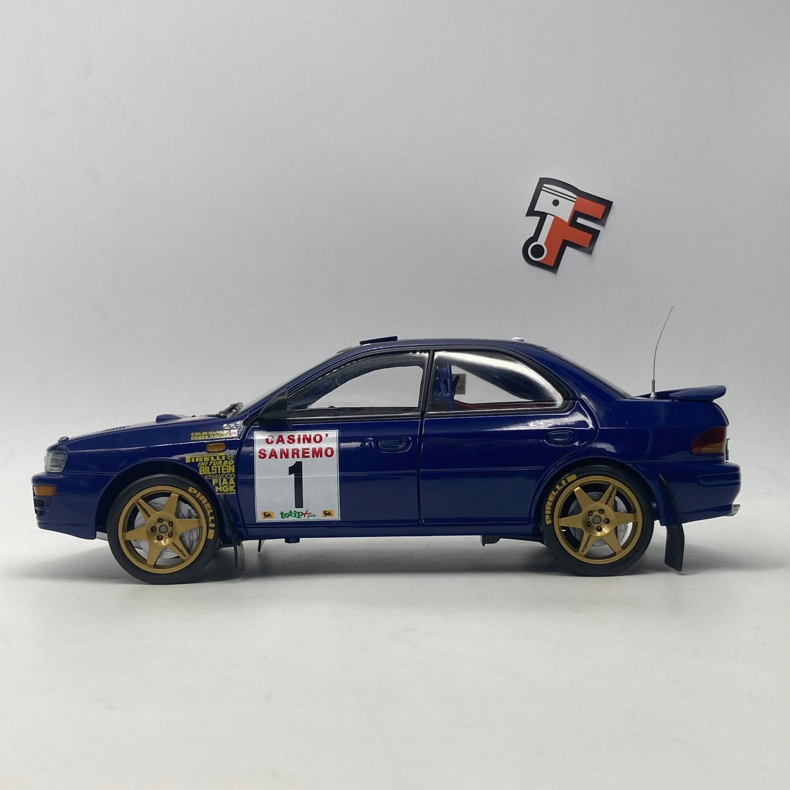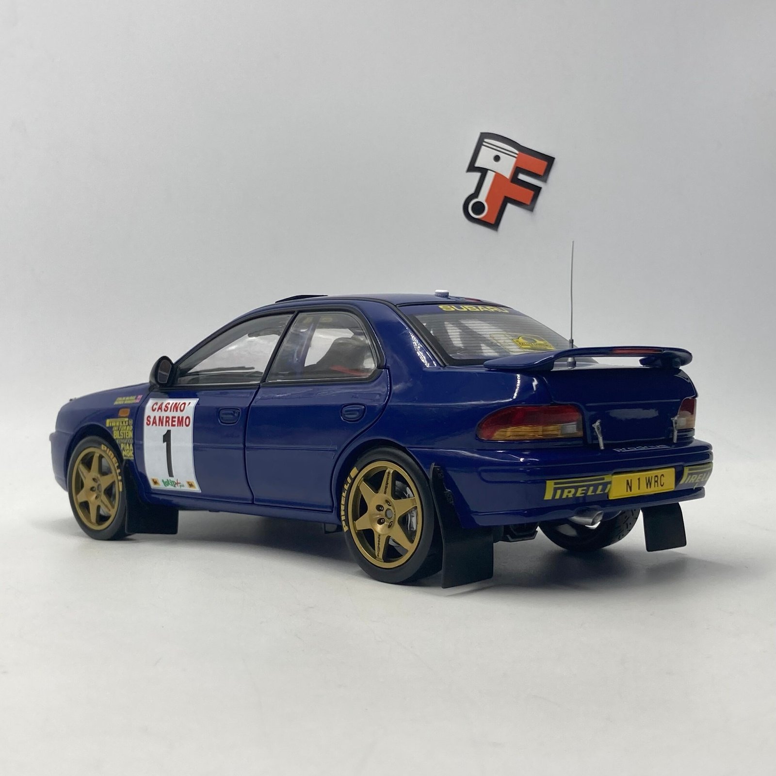 Revivez l’un des moments les plus intenses de l’histoire du WRC avec cette Subaru Impreza 555, fidèle réplique de la voiture victorieuse au Rallye Sanremo 1996. Pilotée par le légendaire Colin McRae et copilotée par Derek Ringer, cette monture arborant le numéro 1 a marqué les esprits par sa livrée bleue et jaune emblématique et ses performances de pointe sur les routes asphaltées et techniques de l’Italie.