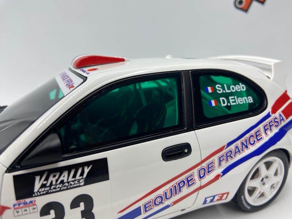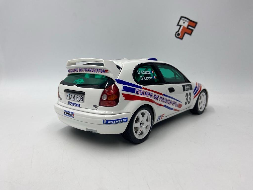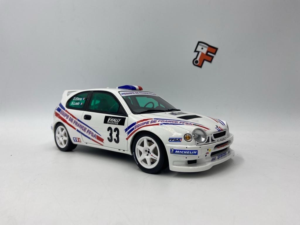 Cette miniature Toyota Corolla WRC au 1/18 – référence OT0996 reproduit fidèlement cette voiture mythique du WRC avec un niveau de détail impressionnant.