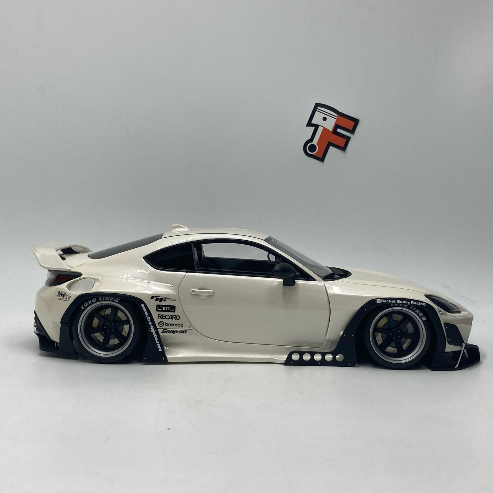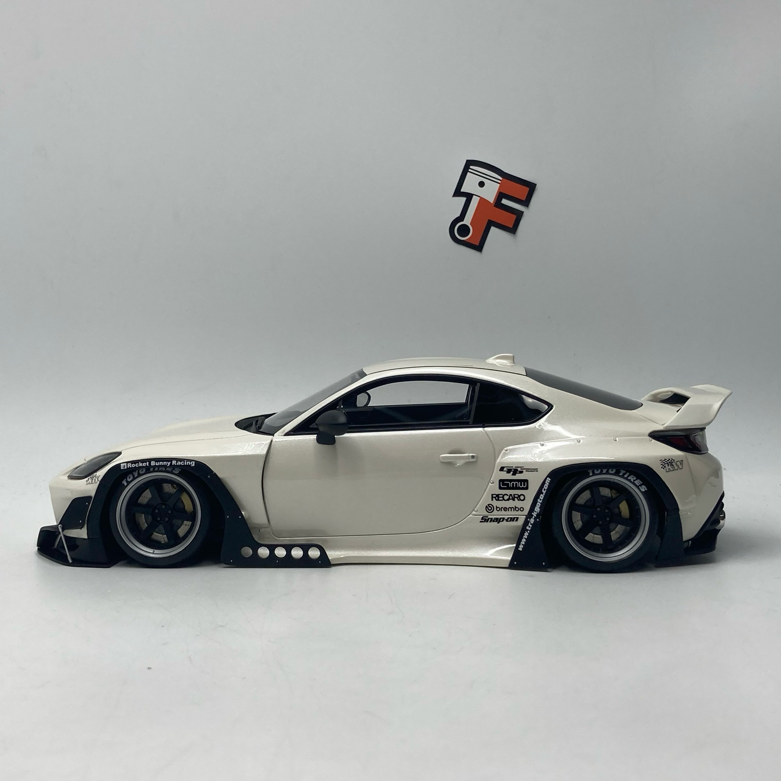 Cette miniature Toyota GR86 Rocket Bunny Pandem GT498 au 1/18 reproduit avec précision cette préparation spectaculaire et tous ses éléments caractéristiques.