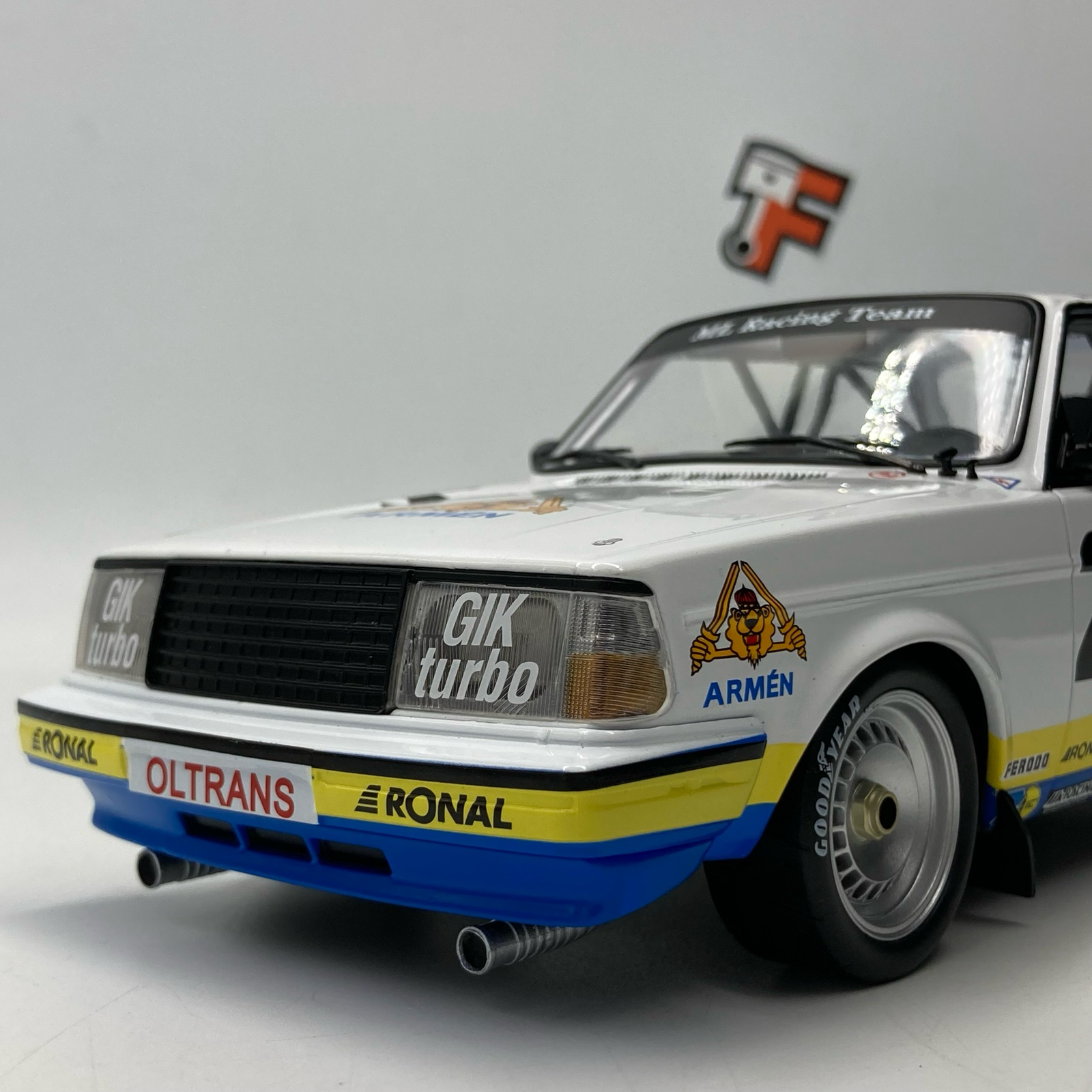 Cette version engagée par M&L Racing Sweden porte le numéro 24 et a participé au DPM SuperSprint sur le célèbre circuit du Nürburgring en 1985. Avec sa livrée de course distinctive et sa préparation spécifique pour la compétition, elle incarne parfaitement l’esprit des voitures de tourisme des années 80, où puissance et spectacle étaient au rendez-vous.